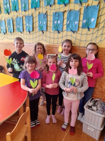 My všichni jsme byli moc rádi, když venku vysvitlo slunce a oteplilo se. Venku jsme viděli jak rozkvétají stromy a některé květiny, přestože byl ještě únor. Ve školni družině jsme s chutí malovali jarní květiny a taky zvířátka a ptáčky. Nezapomněli jsme též vyrobit květinu pro maminku k MDŽ. Po delší době jsme vyrazili na vycházku do blízkého lesa, kde si velmi rádi hrajeme. Nemohli jsme se dočkat jarních prázdnin, až si toho teplého počasí budeme užívat plnými doušky.