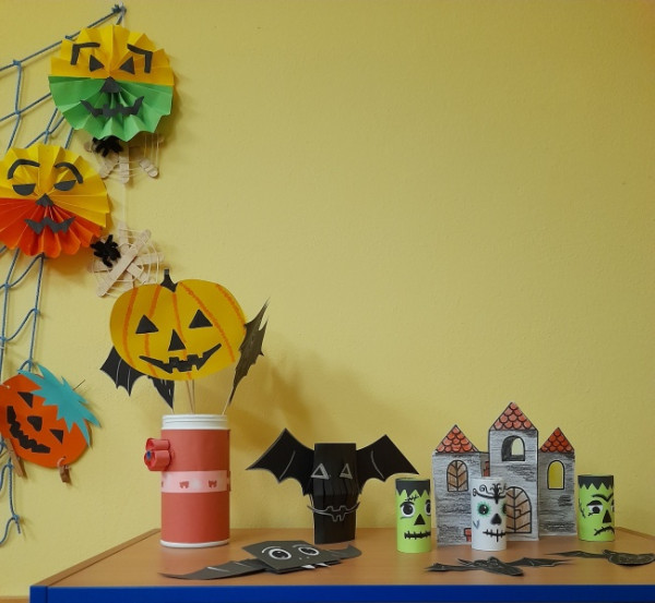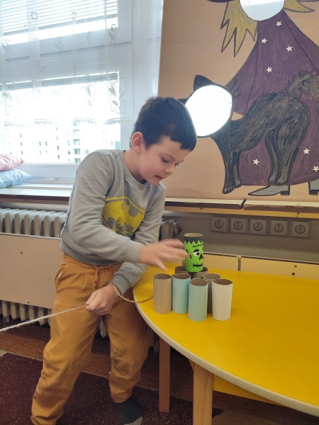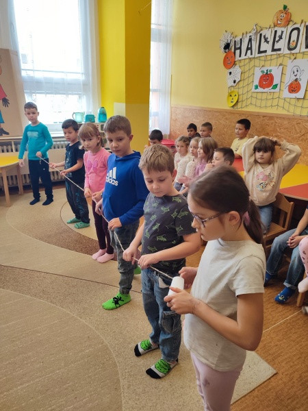 Ve středu 22. října jsme trochu s předstihem oslavili Halloween. Na úvod jsme si společně zatančili a potom jsme soutěžili. Děti si mohly vyzkoušet hod míčkem do lepkavé pavučiny, soutěžily ve stavění hradu pro Frankensteina, skládaly puzzle apod. Trénovaly svou rychlost, postřeh, paměť a spolupráci ve skupině. Na závěr si pochutnaly na sladkých halloweenských dobrůtkách. Všichni jsme si to užili.