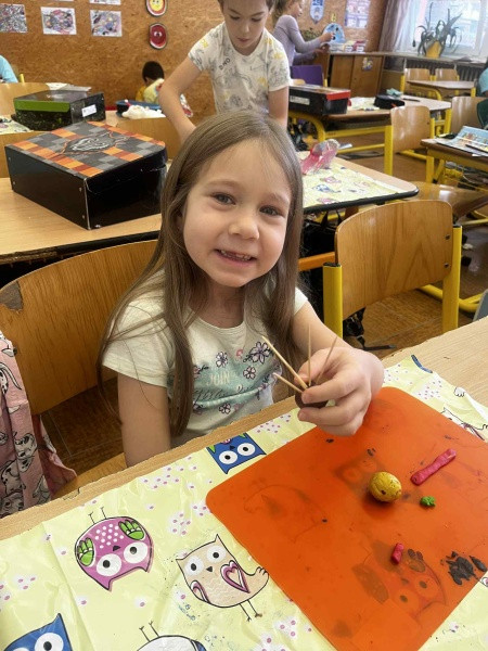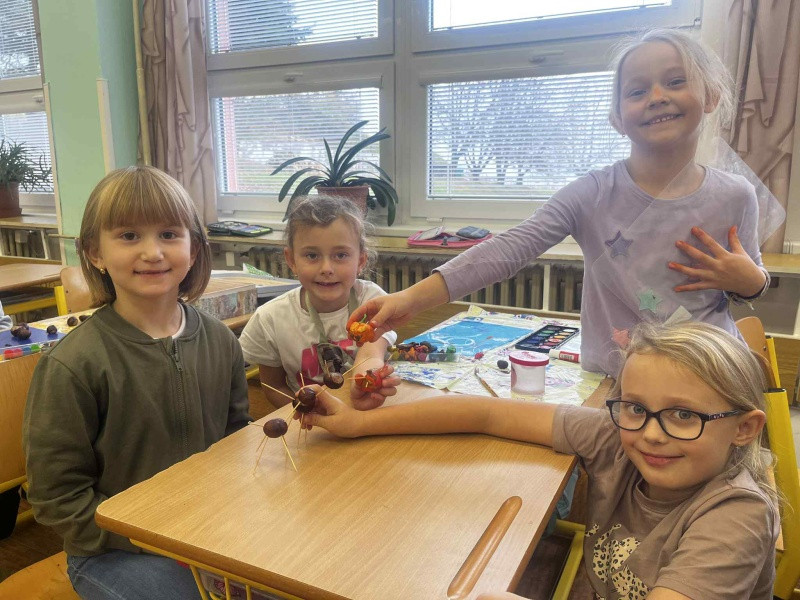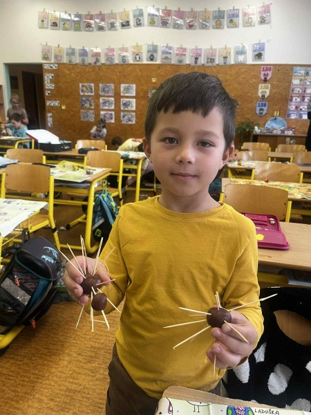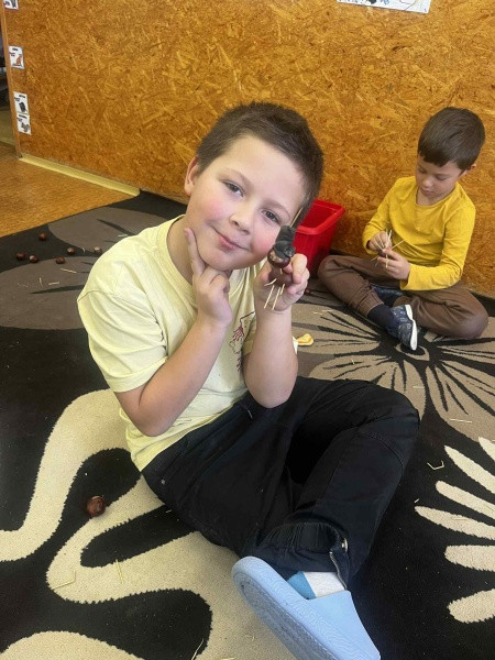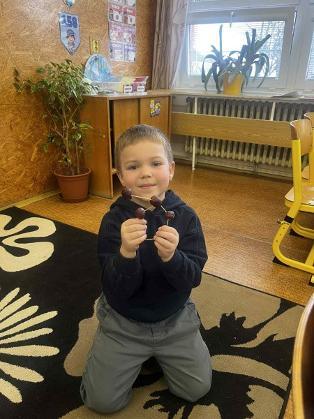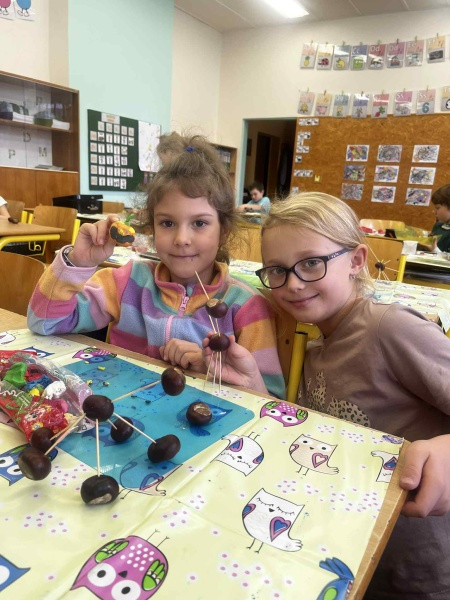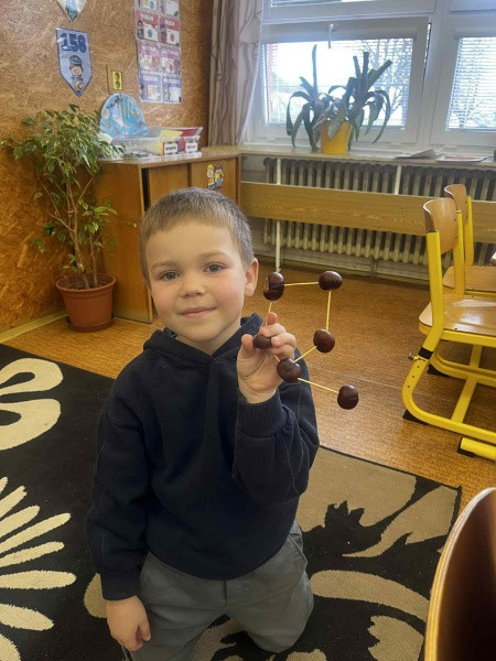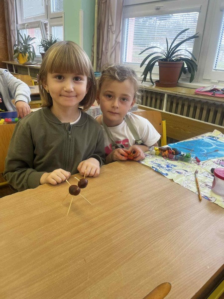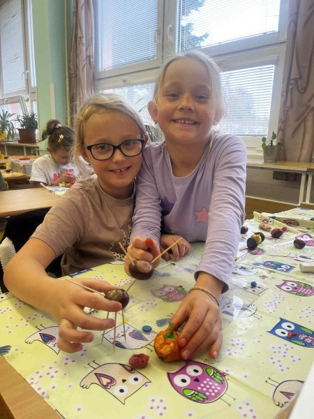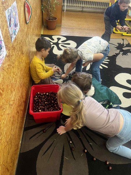 Koncem října a v listopadu jsme se vrhli na různé tvoření. Děti si vytvořily záložky, které jim pomohou se čtením. Pro velký úspěch jsme opět tvořili z modelíny. Z kaštanů jsme sestavovali různá zvířátka a stavby. S kaštanem jsme si užili velkou zábavu při kaštanové honičce po papíře.