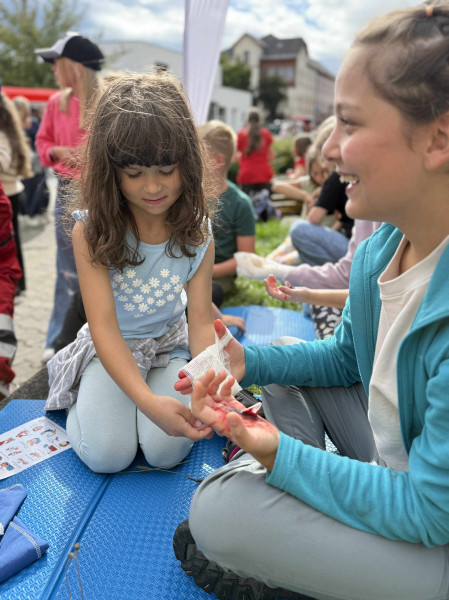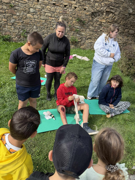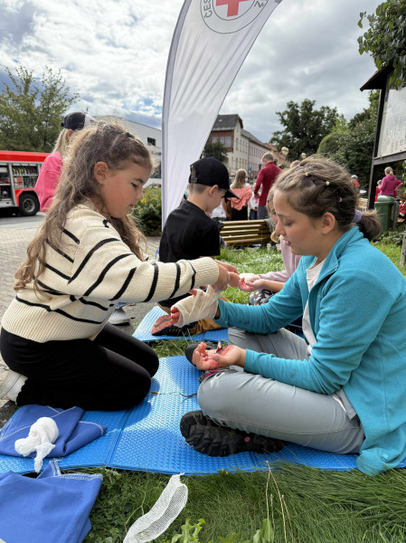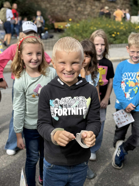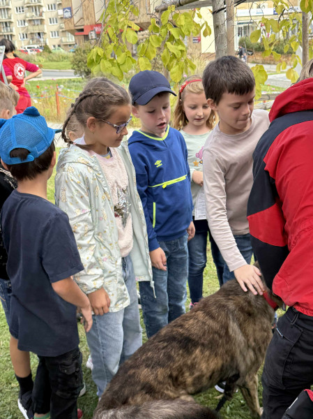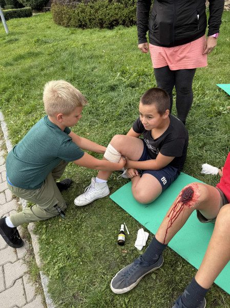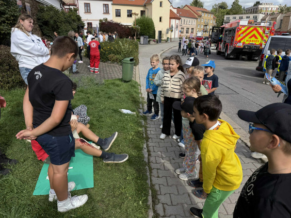 V pondělí 15. září jsme se zúčastnili akce pořádané ke Světovému dni první pomoci. Oblastní spolek Českého červeného kříže Prachatice připravil pro děti bohatý program. Na stanovištích nás zaujala práce maskérky, která vytvořila figurantům velmi realistická zranění a naši druháčci si vyzkoušeli tato zranění ošetřit. Mnohé překvapilo, jaké mají děti vědomosti, jak dokáží naslouchat a projevují zájem o danou tématiku. Líbilo se nám také hasičské auto, do kterého se mohli všichni posadit, u policistů nás nejvíc bavilo spoutání tří spolužáků a nejvíc "kjůt" pro nás byli záchranářští psi, které jsme si mohli i pohladit. Akce byla jako každý rok velmi vydařená a my se budem těšit zase na příště :)