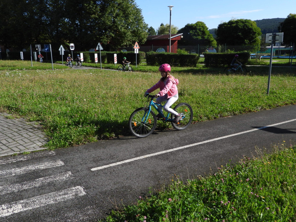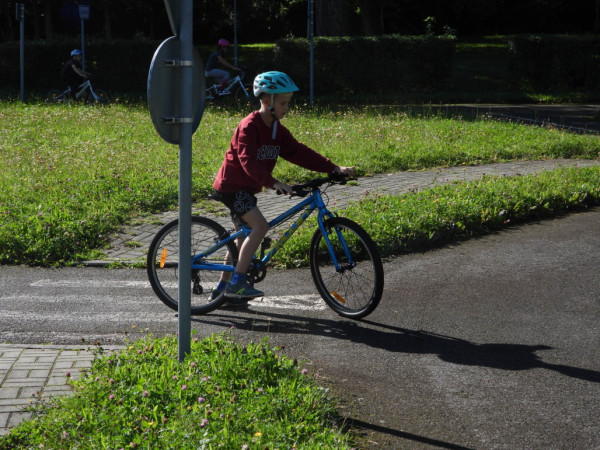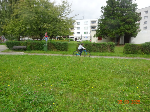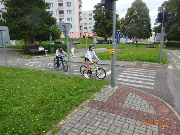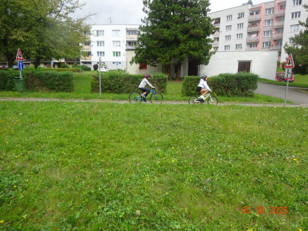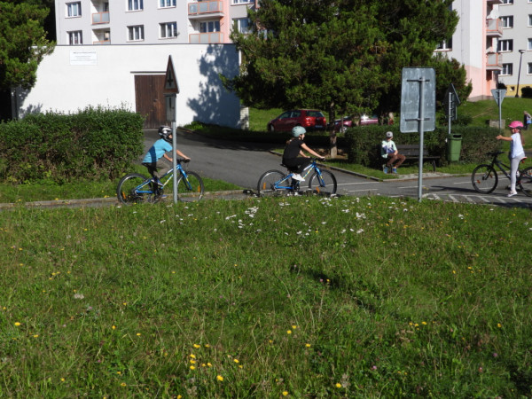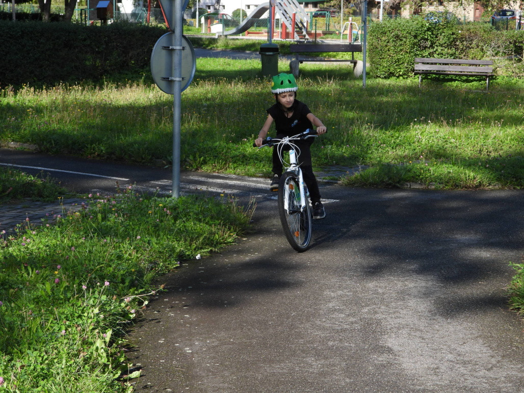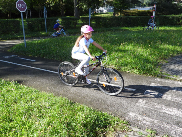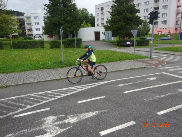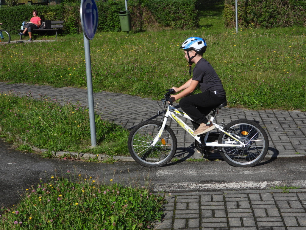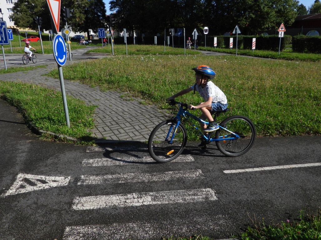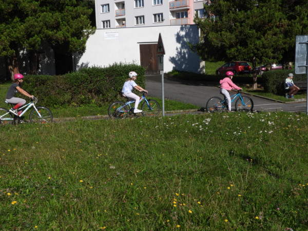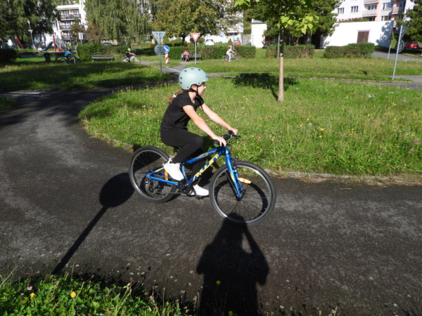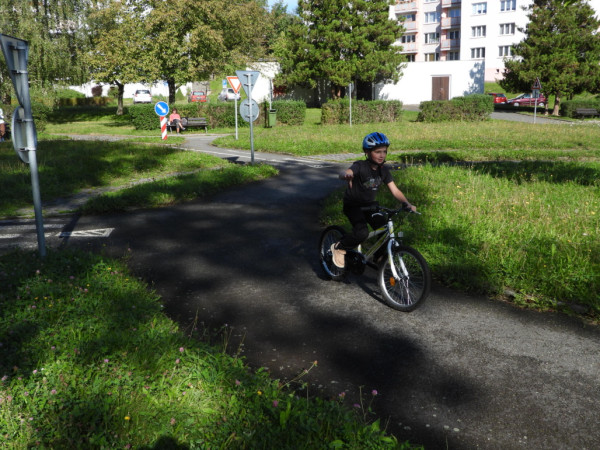 Pak všichni žáci obdrželi jízdní kola a snažili se jezdit na nich po dopravním hřišti podle vysvětlených dopravních předpisů a pod dohledem vyučujícího. Na všechny přestupky byly děti ihned upozorněny.