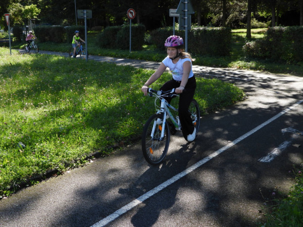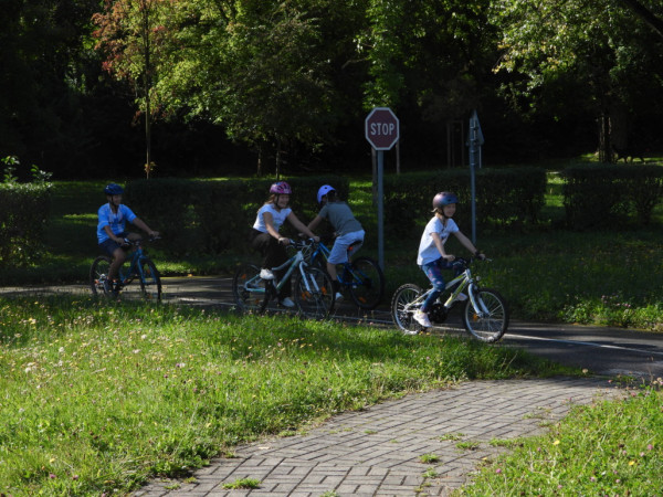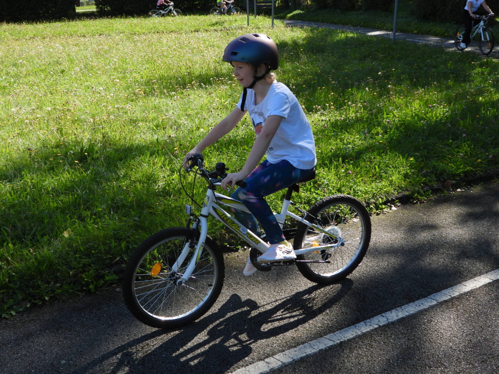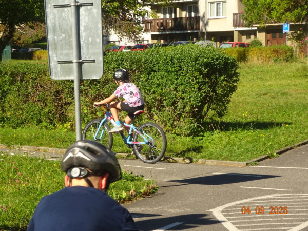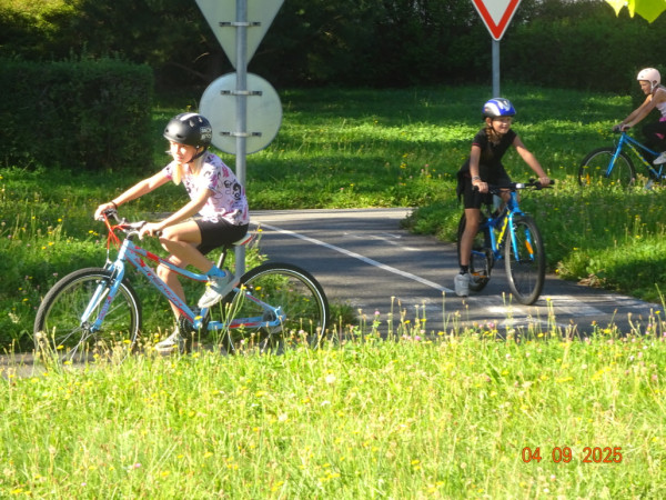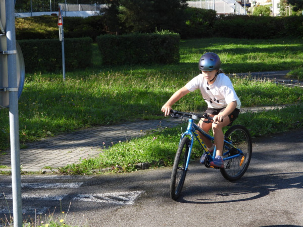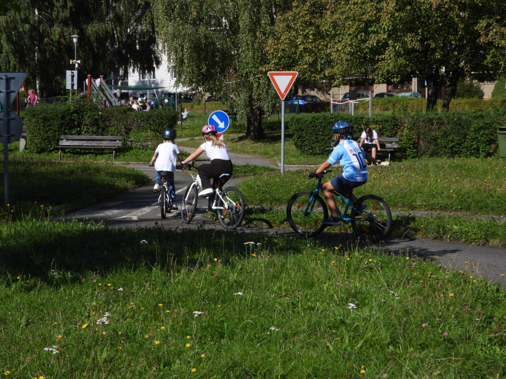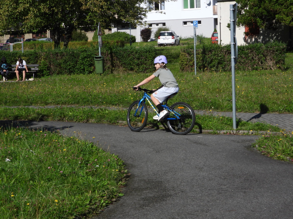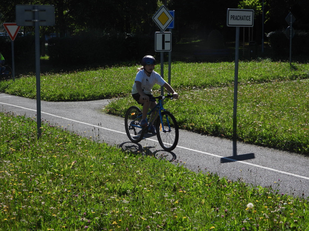 Pak všichni žáci obdrželi jízdní kola a snažili se jezdit na nich po dopravním hřišti podle vysvětlených dopravních předpisů a pod dohledem vyučujícího. Na všechny přestupky byly děti ihned upozorněny.