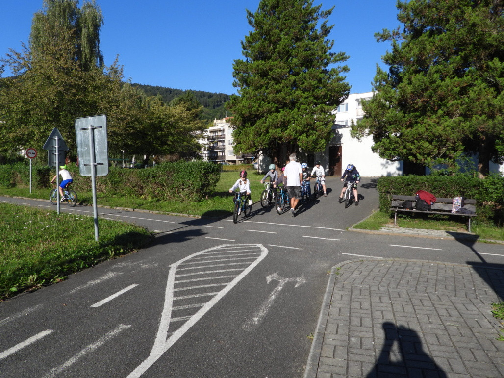 Nejdříve si žáci prošli pěšky celé dopravní hřiště, kdy si s učitelem vysvětlovali jízdu po křižovatkách, přednosti v jízdě, povídali si o místních dopravních značkách, vysvětlovali si jízdu po kruhovém objezdu, ukazování rukou, řazení do jízdních pruhů atd..