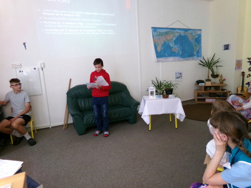 Tento týden byl pravděpodobně poslední, kdy jsme se s dětmi viděli společně v tomto školním roce. Příští týden bude ve znamení výletů a setkáme se pouze s některými. Proto jsme se snažili dokončit práci v U7 a U8, kde jsme se lehce dotkli použití předpřítomného času. Čtvrtek byl ve znamení anglických her, jelikož byly obě skupiny spojené. Děti též obdržely certifikát za dokončení celé sady učebnic WOW a tím se loučí se Stevem a Magie. Pevně věřím, že jim oba pomohli vytvořit si kladný vztah k jazyku.