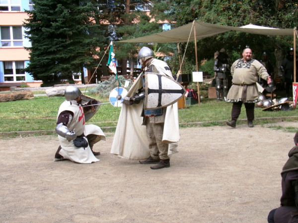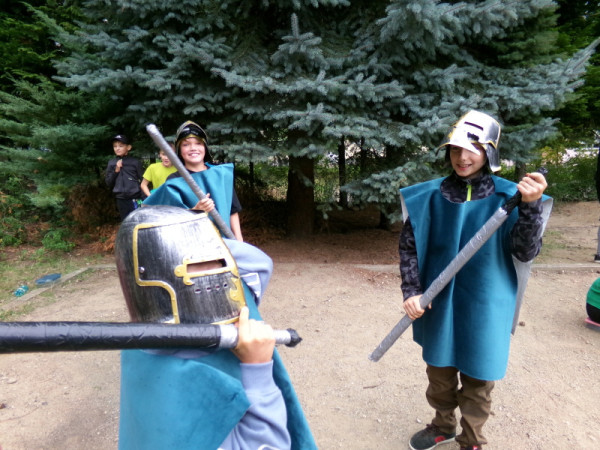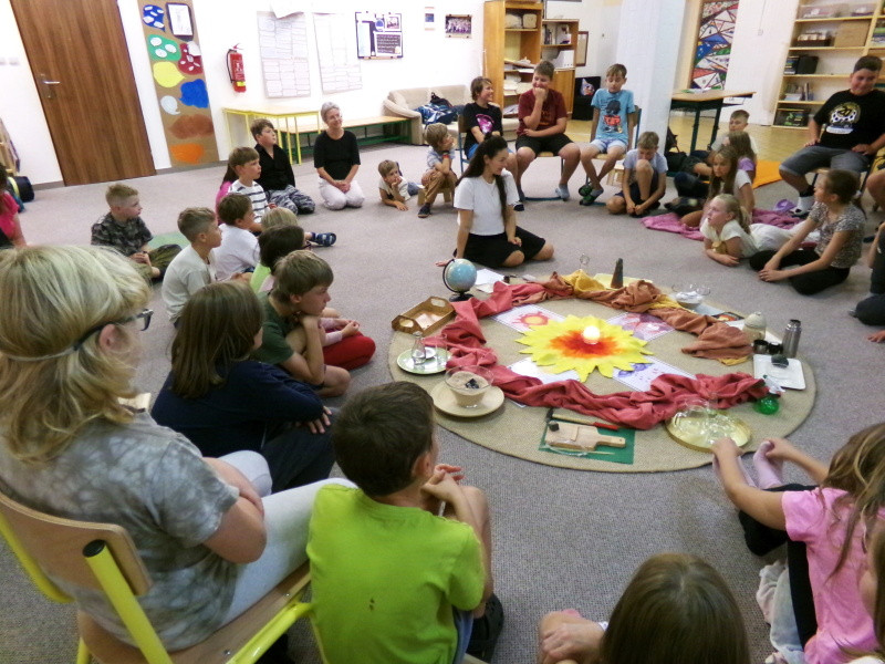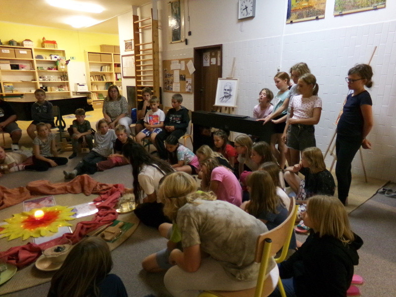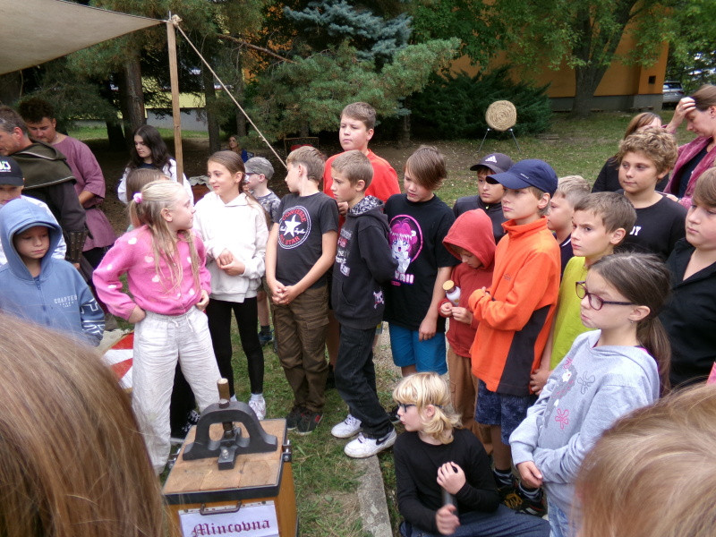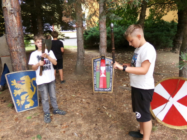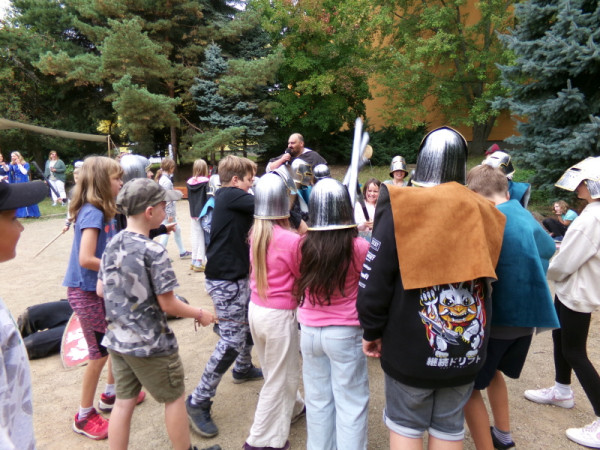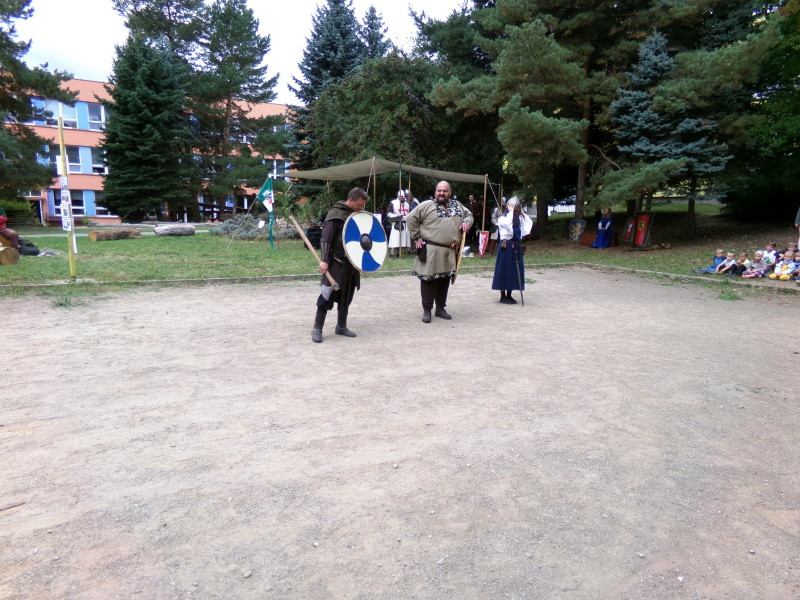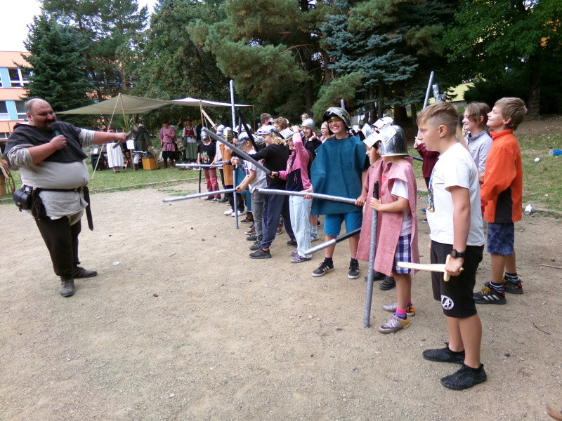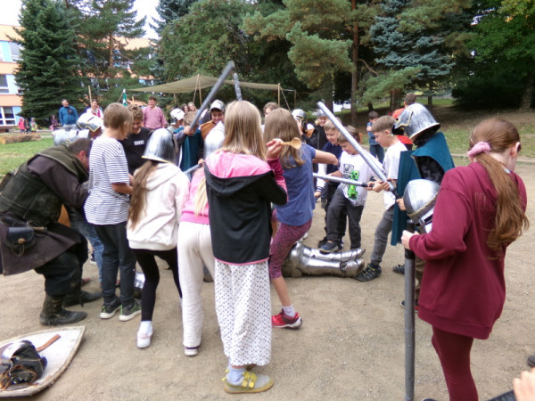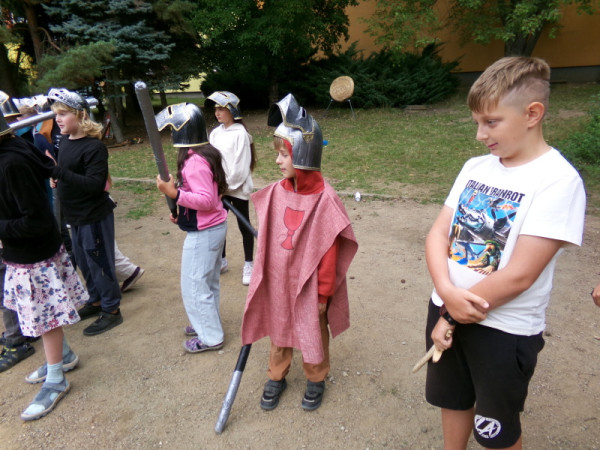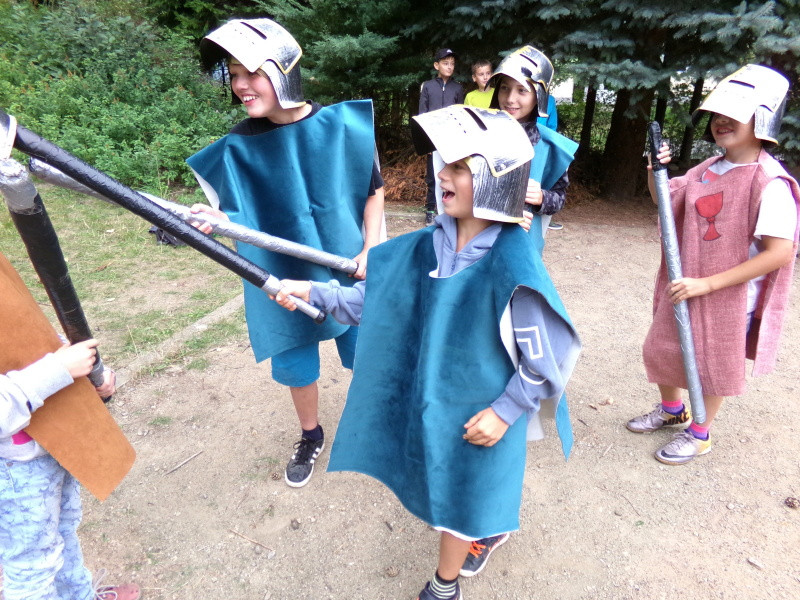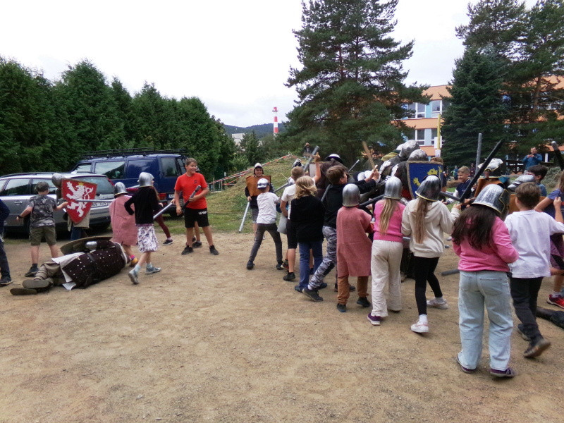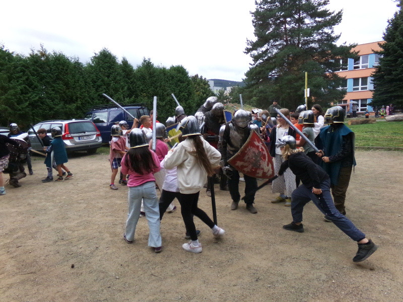 byli jsme pilní hned od začátku. Učili jsme se toleranci, také něco vydržet, poznat spolužáka, trošku sám sebe. Byl čas na popovídání, 1. velký příběh, také na bojovou hru party nadšenců. V noci se hodně moc chechtalo, cestovalo, brebentilo. Tak to má být. A v pátek děti zažily neuvěřitelnou šou na montessori zahradě - to když k nám a jenom pro nás přijeli šermíři ze Zdíkova. Bylo to neuvěřitelné - podívejte se na fotky.