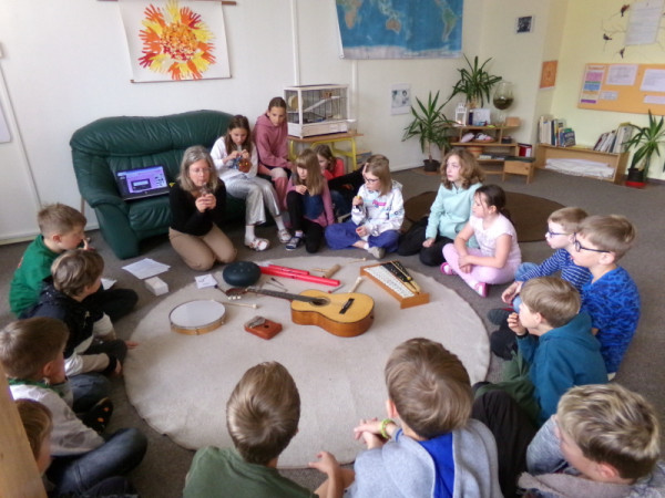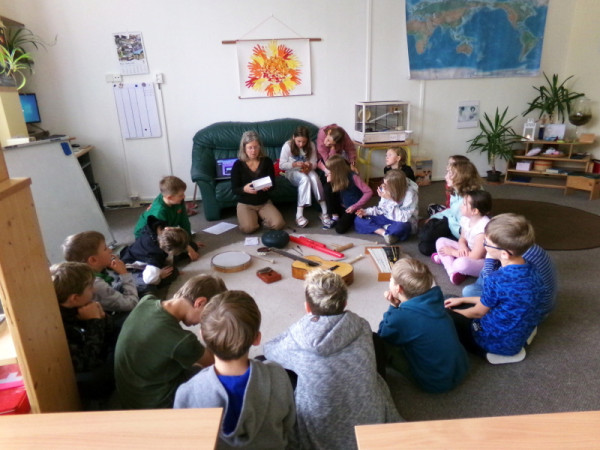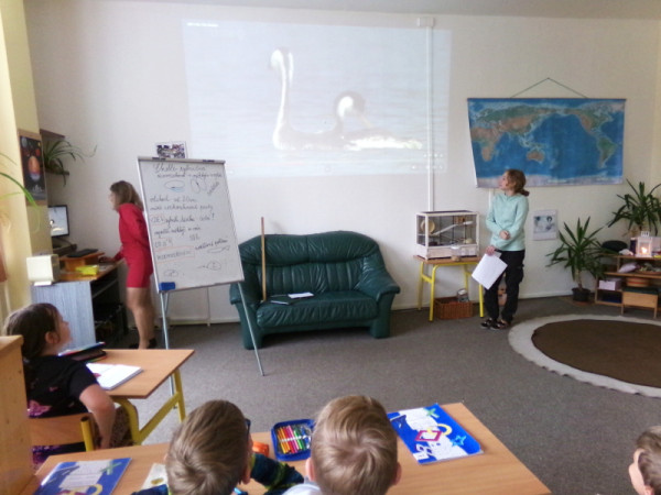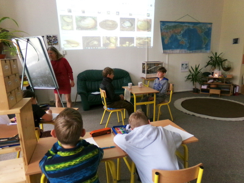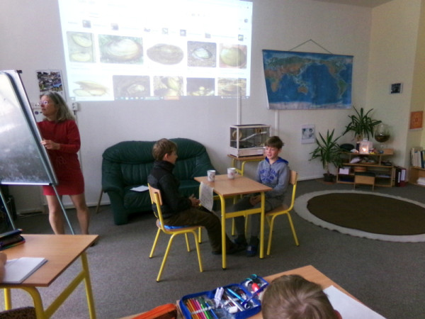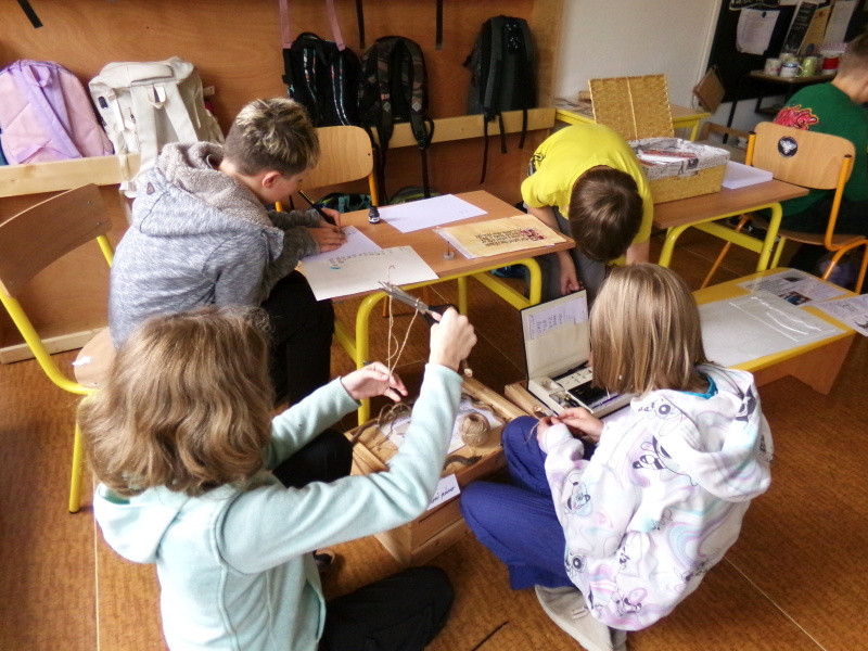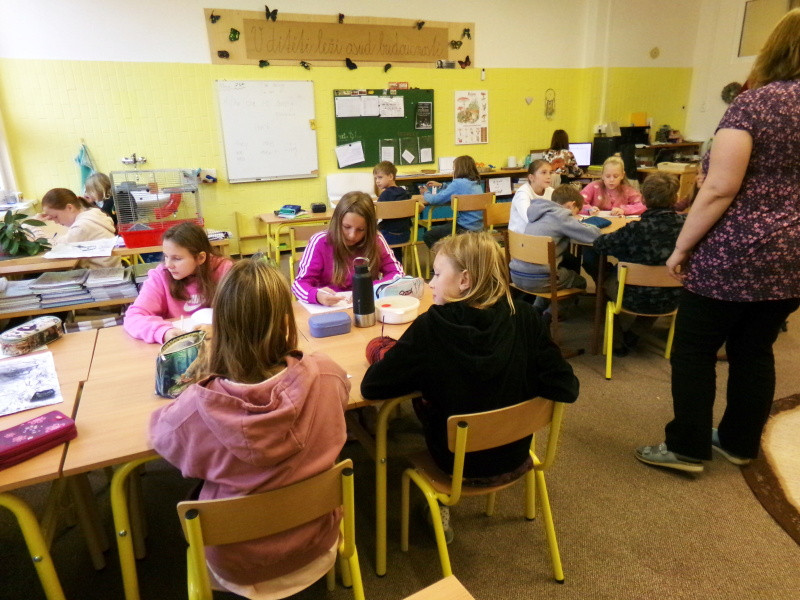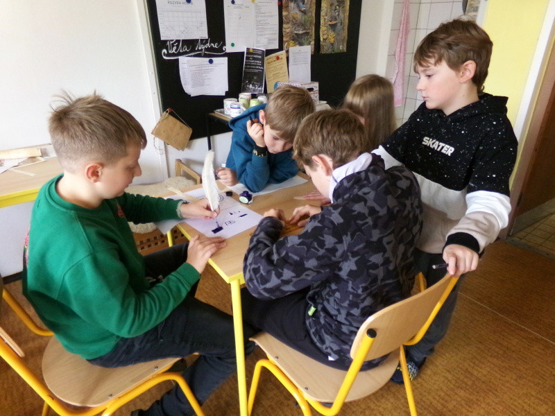 nezaháleli jsme. Kdo chtěl, napsal si Pythagoriádu - zajímavé, že byla pro 6. ročník, ale chtěli ji psát čtvrťáci a páťáci. Bylo několik nových prezentací, napsali jsme si diktát a rýsovali. Jsem moc ráda, že malé opakování využili všichni. Začali první prezentace tématu Rybník. Poznávali jsme hudební nástroje, slyšeli příběh o vzniku čísel a písma, děti si zkusily psát na papyrus.