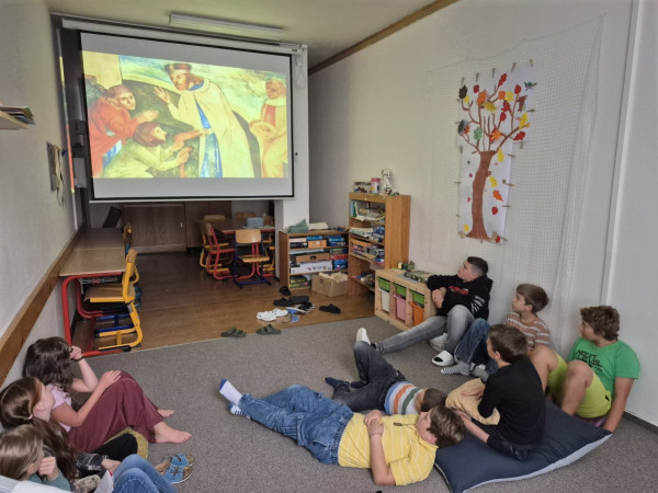 Uplynulý týden byl pestrý, připravovali jsme se na oslavu 35. výročí školy. Někteří zkoušeli na akademii, někteří pekli s Katkou. Mezitím vším byl i čas na práci - vypracovat si výpisky z textu o znacích pohádky, chvilku si tiše číst, zhlédnout krátký dokument o svatém Václavovi, pracovat na myšlenkové mapě o vodě, kartičkách týdne,... Ve čtvrtek jsme si napsali kontrolní práci z češtiny. Páteční den patřil pravěké výtvarce, hudebce a 3. kosmickému příběhu (přemýšleli jsme jaké dary dostal člověk a jakou má zodpovědnost).