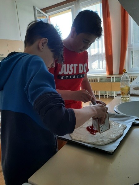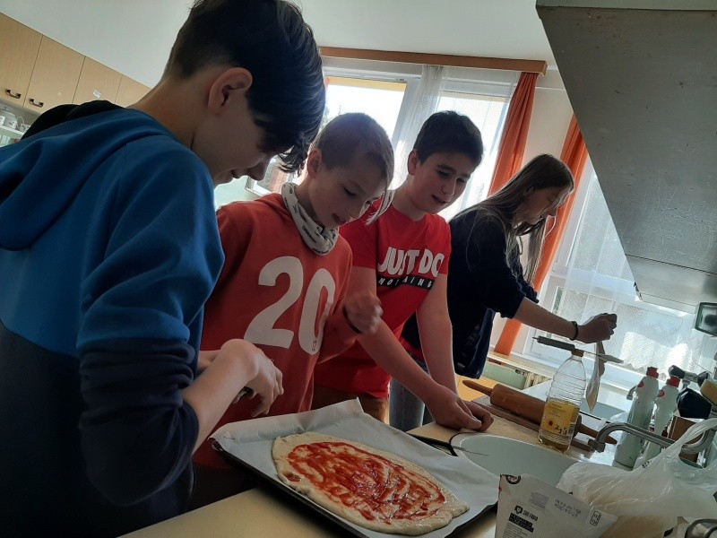 Šesťáci si povídali o Itálii. V rámci jejího poznávání strávili i nějaký čas v kuchyňce, kde si vytvořili pizzu, a byla mňam :)
