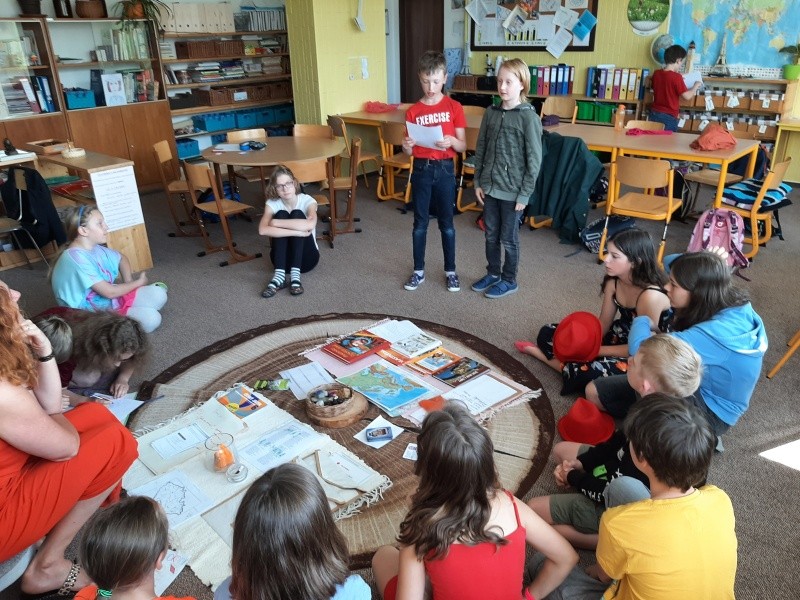Čtvrťáci během angličtiny dokončili Unit 7. Poslouchali písničku, hráli pexeso, popisovali zvířata, hledali podle instrukcí správný směr. Příští týden ve středu je čeká test Unit 7.