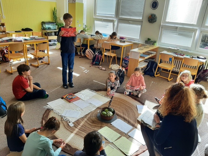 Tento týden proběhly všechny naplánované prezentace (fotosyntéza, historické prameny, úvod do literatury, písemné odčítání a dělení, rýsování kružnice, osa úsečky). V úterý mezi nás přišla paní Polatová z městské knihovny a měla pro nás připravené povídání o nářečí, bylo to zajímavé. Celý týden se nesl v dokončování měsíčního plánu. Proběhla týdenní poznávačka - mikroskop. Zkusili jsme si kratičkou časovku na násobilku, prezentovali své slohové práce - pohádky, ...