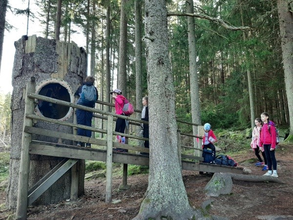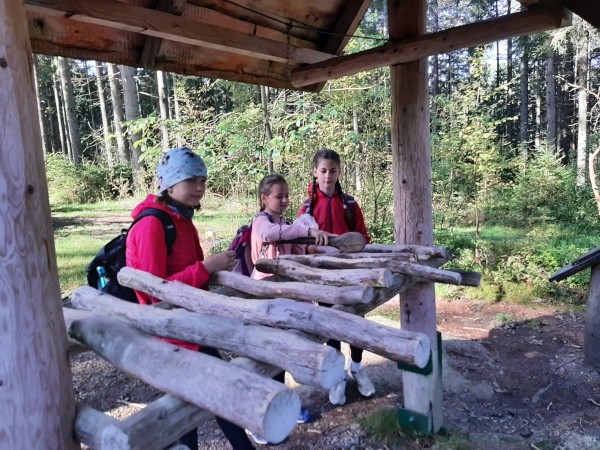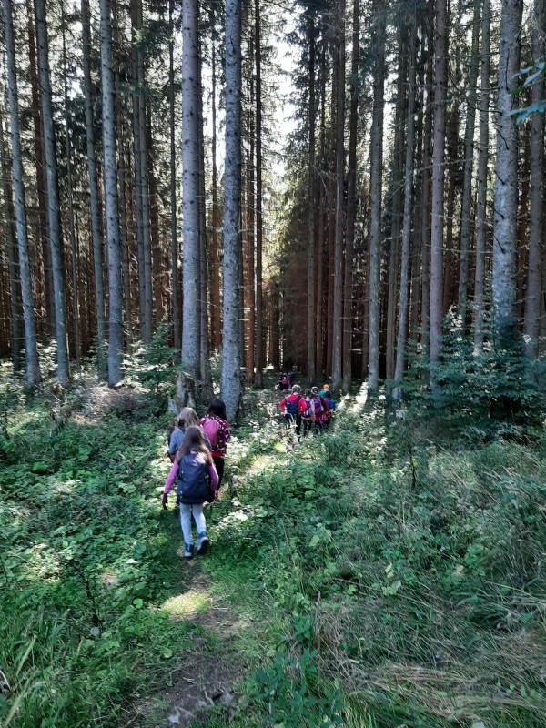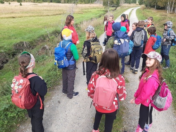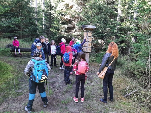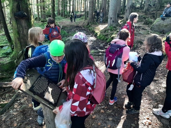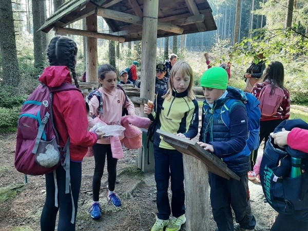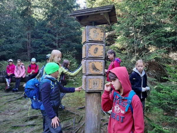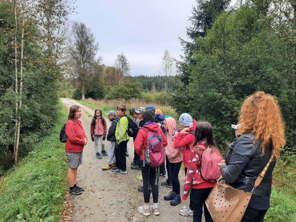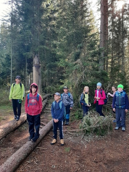 Tento týden byl krátký, ale naplněný mnoha různými zážitky. V pondělí jsme vyrazili ke stožecké kapli. Po cestě nám Dáša, která nás provázela, řekla mnoho zajímavých informací, některé už jsme znali, některé byly nové. V úterý jsme se vydali na okruh soví nebo také puštíkovy stezky a objevovali zase jiné zajímavosti. Nejvíce nás zaujaly stopy, které jsme objevili v bahně na dně louže.