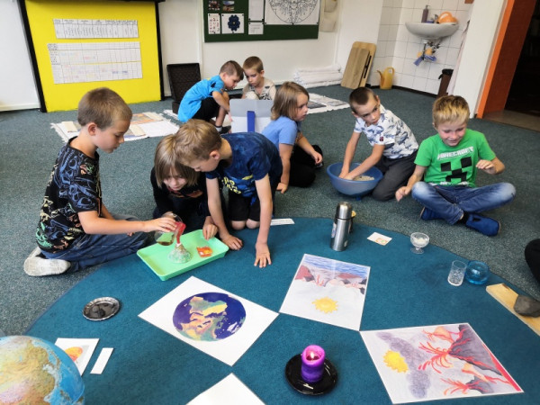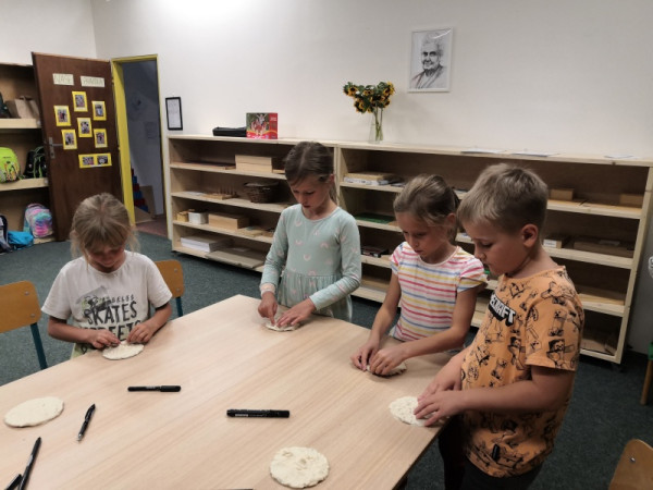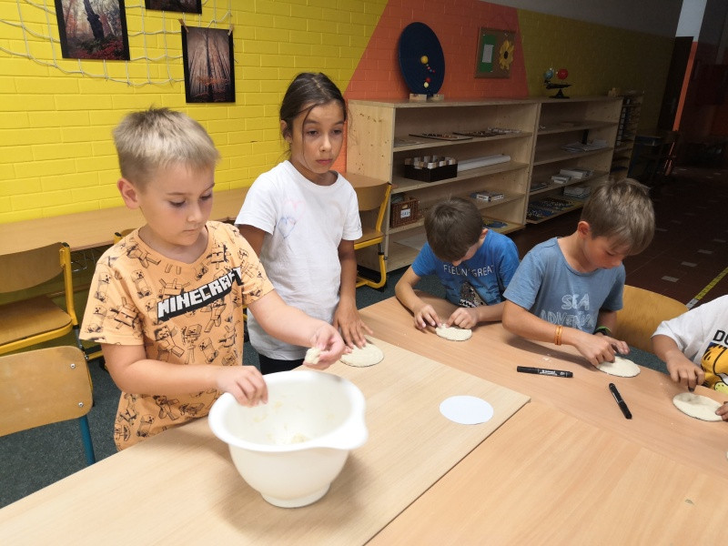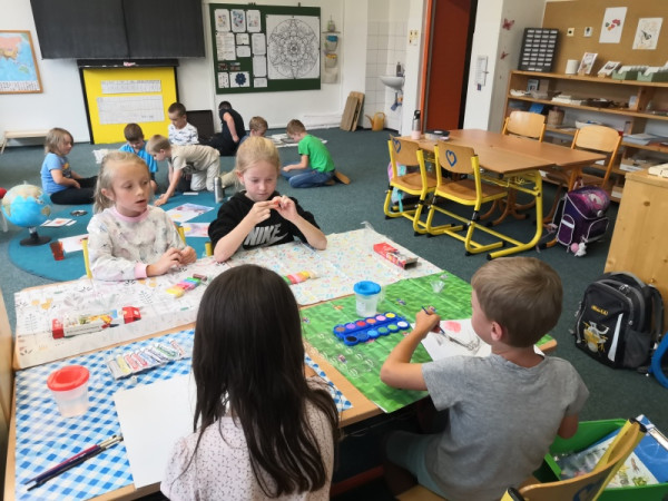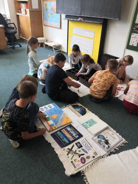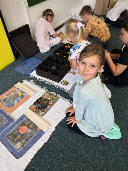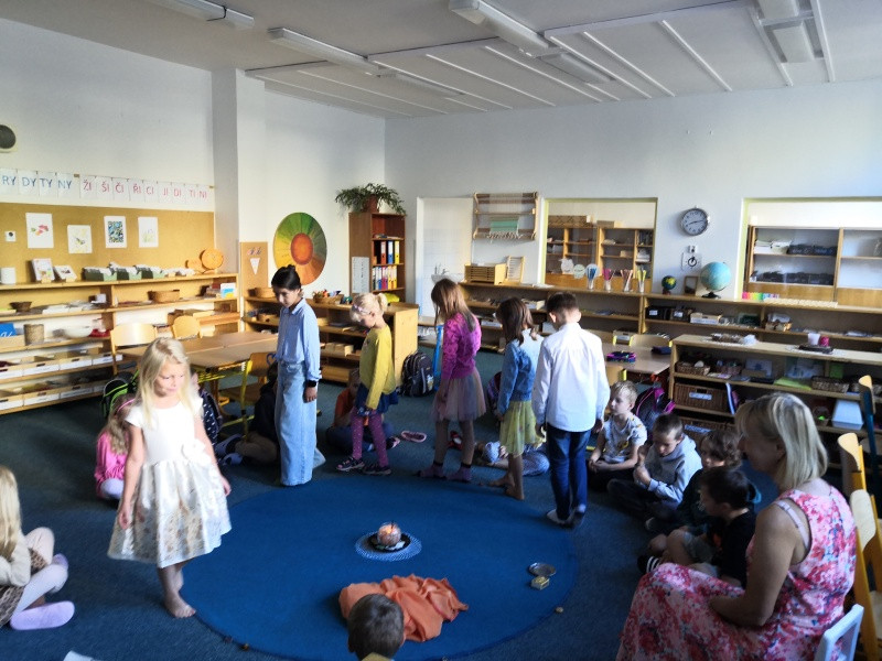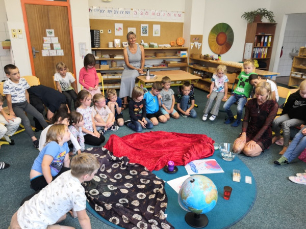 Začali jsme tradičně – školní řád, pravidla třídy, podepisování sešitů... Dnes jsme si po tělocviku vyprávěli kosmický příběh o vzniku vesmíru. Připojila se k nám Vlčata, a tak děti mohly v následných aktivitách pokračovat s nimi.