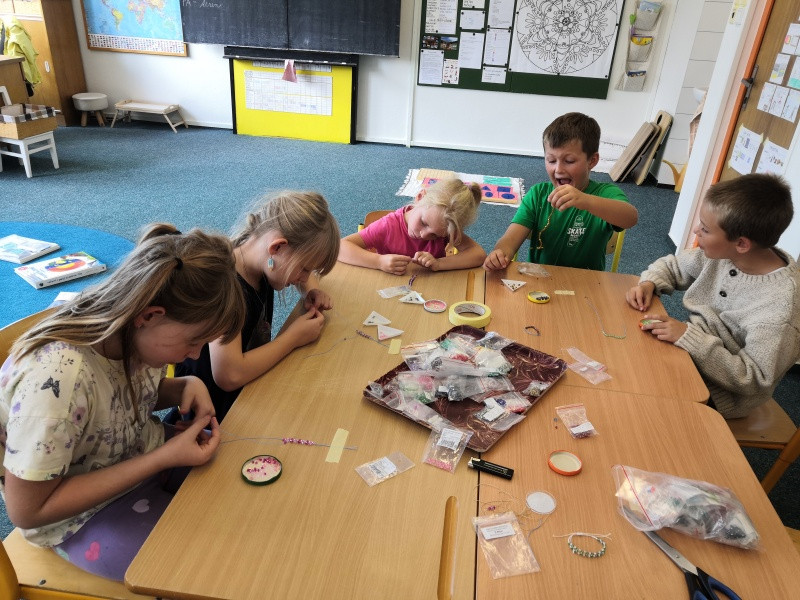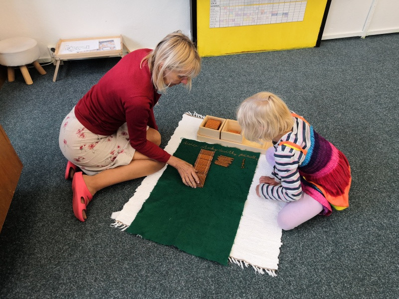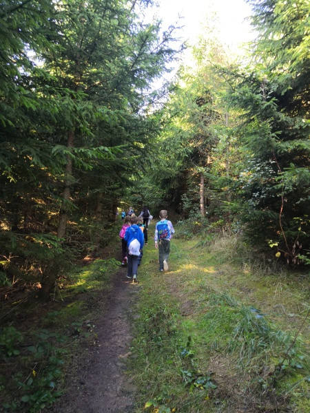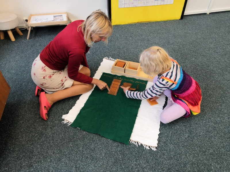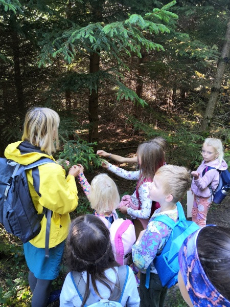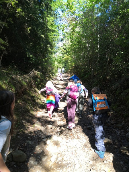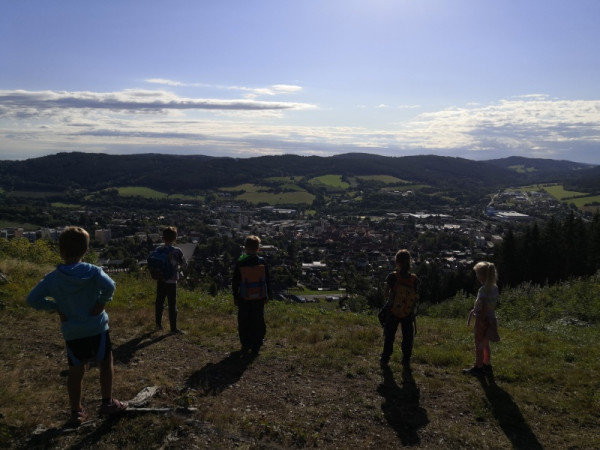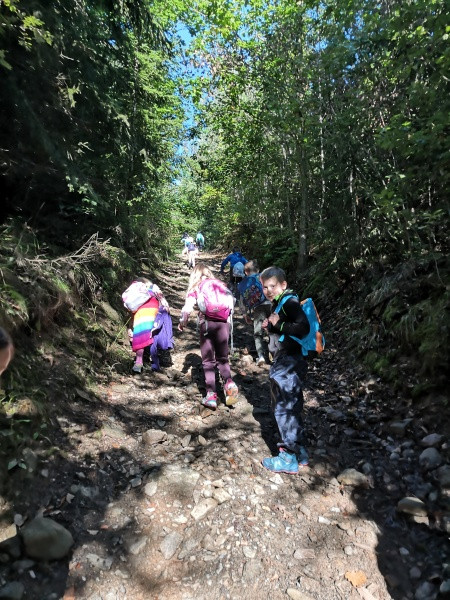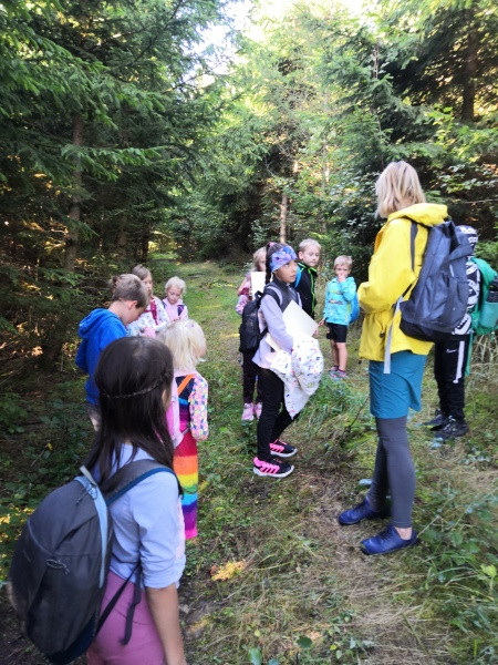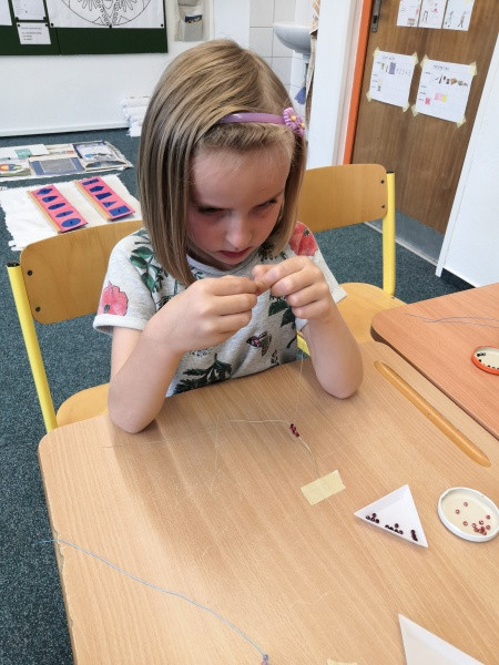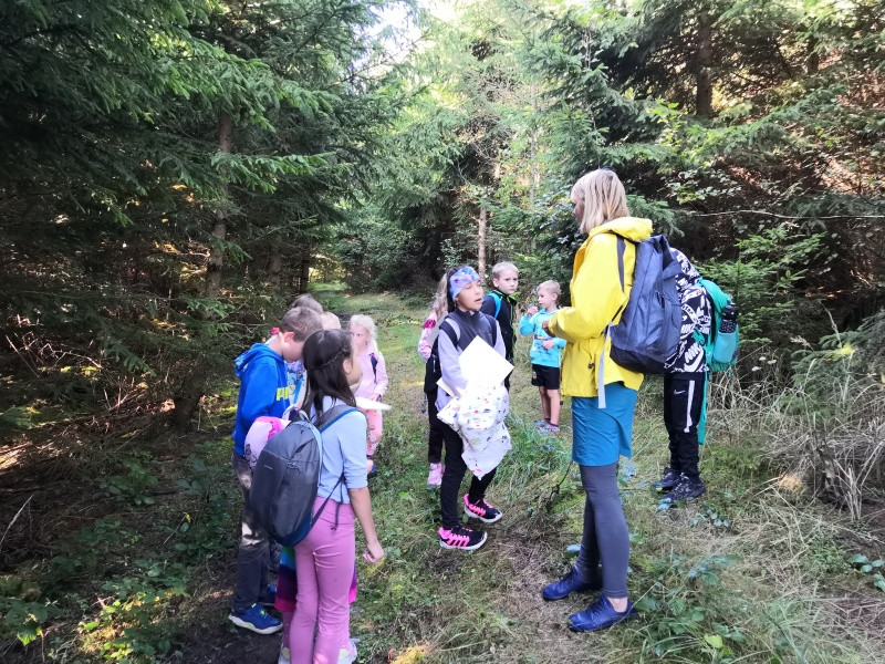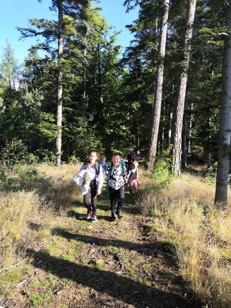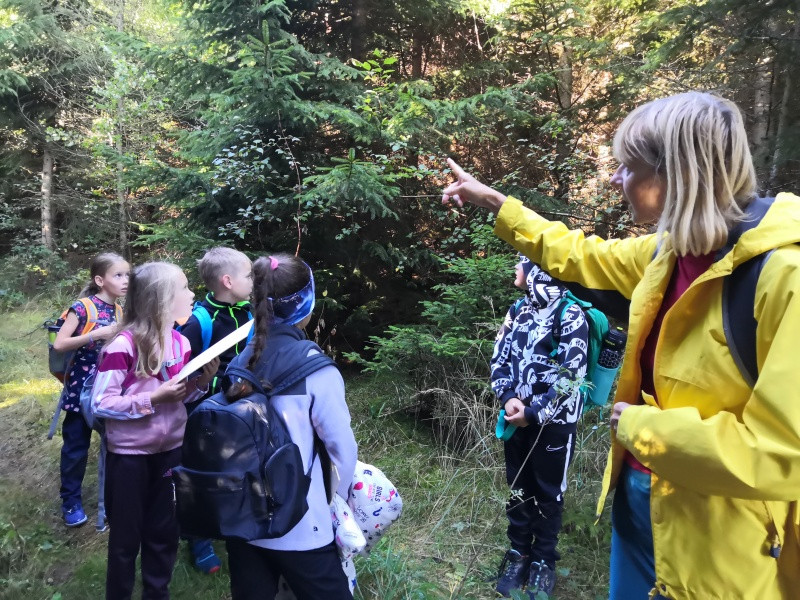 Pokud je dobré počasí, snažíme se využívat venkovní prostory (altán, terasu) k výuce. V oboru Člověk a jeho svět se zabýváme okolím školy, a rostlinami, tak se nám hodí vyjít ven. Někdy to spojíme i s ang. konverzací, kterou vede Viktorie.