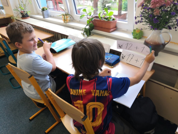 Třeťáci si připomněli loňské učivo z ČJ, násobilku 1-5 a sčítání a odčítání do 100, někteří stihli i písemné sčítání.