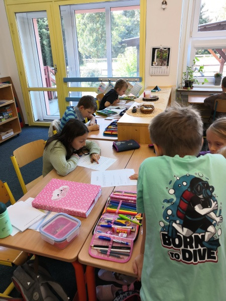 V pondělí a v úterý udělali třeťáci kus práce, snažili se pilně plnit plán. Nově v něm mají násobení a dělení od 6 výše a písemné počítání. V ČJ se začali zabývat naukou o slovech. Druháci poznali druhy vět, učí se je poznávat a tvořit. Řešili slovní úlohy a příklady do 20, v geometrii se seznámili s přímou, lomenou a křivou čárou. Prvňáčci intenzivně pracovali na pomůckách, procvičovali čtení, psaní slov velkými tiskacími písmeny, porovnávání čísel, seznámili se se slovními úlohami na odčítání.