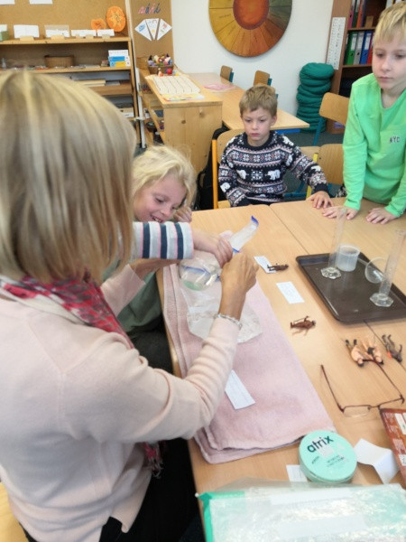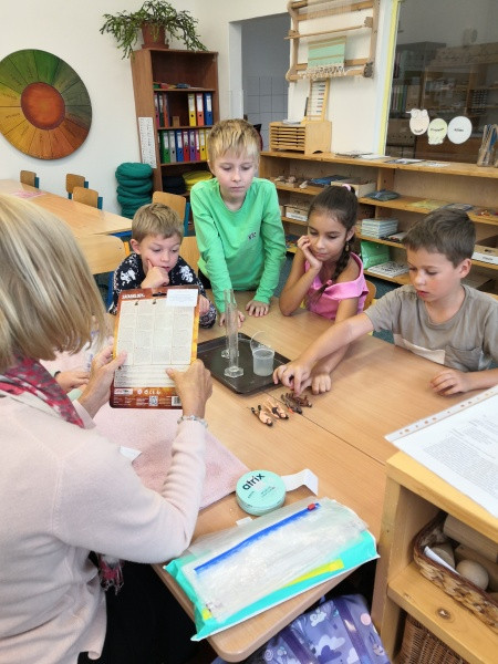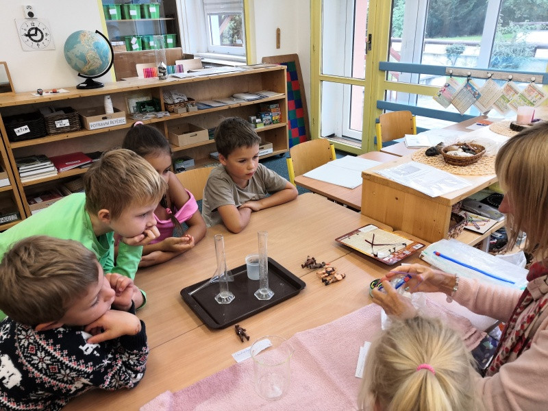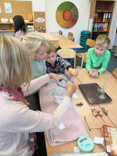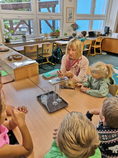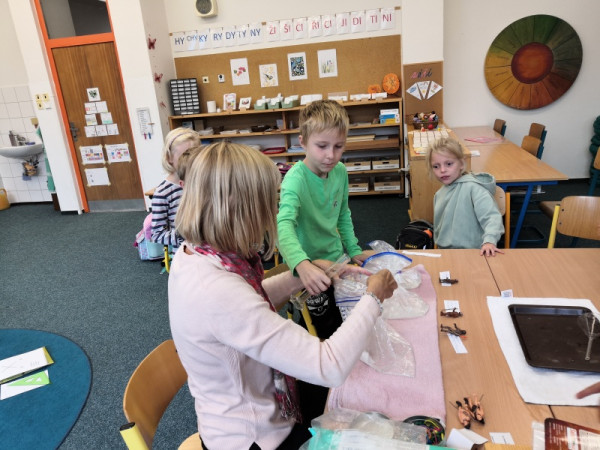 Z nabídnutých aktivit si některé děti vybraly práci s kompasem nebo zkoumání objemu mozku pravěkých lidí.