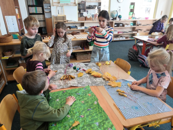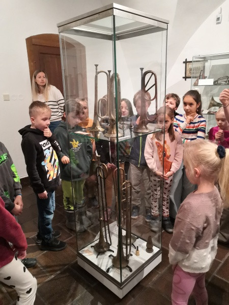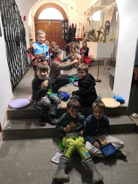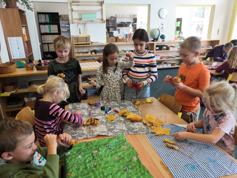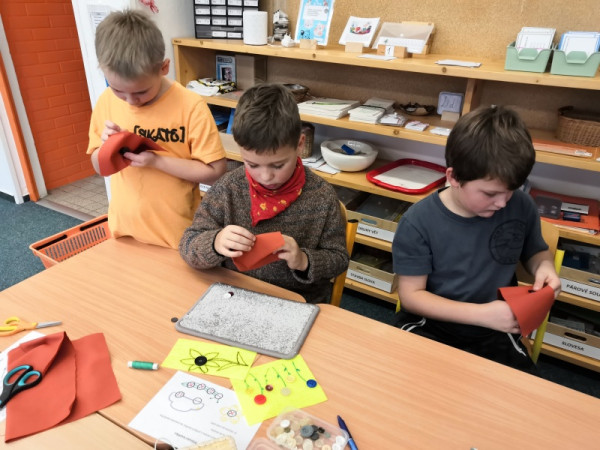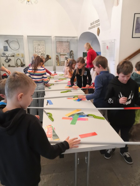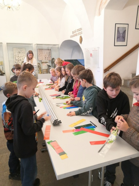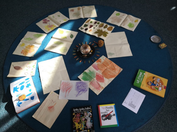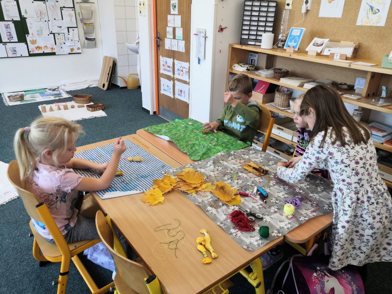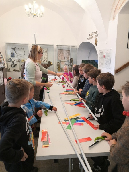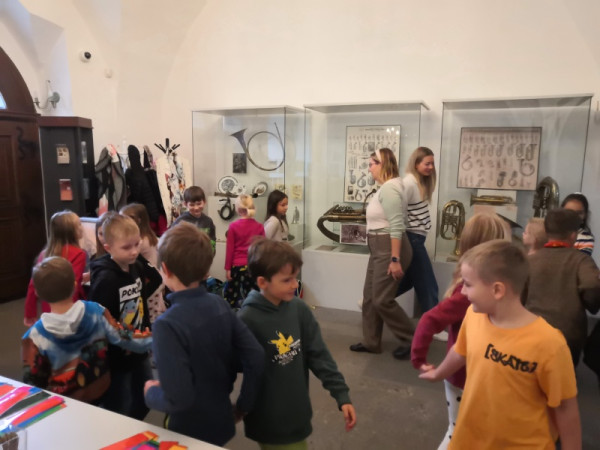Jedna žačka přinesla materiál a učila děti vyrábět růže z javorového listí. Týden jsme zakončili návštěvou výstavy historických hudebních nástrojů, kde si děti zkusily vyrobit nástroj, zahrát si na něj, zazpívat si a zatančit.