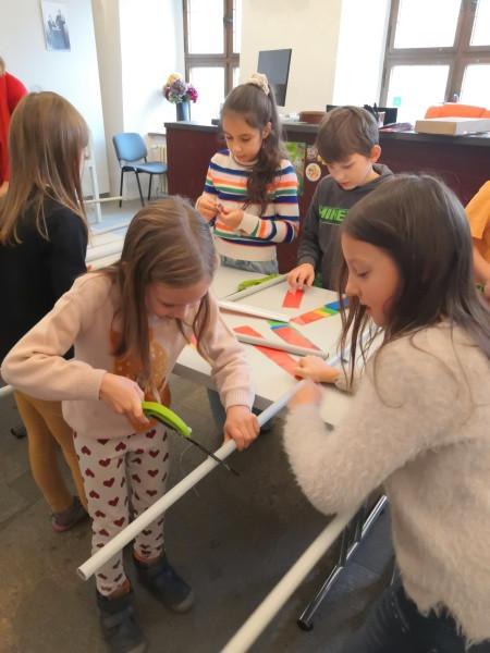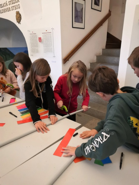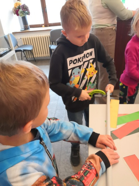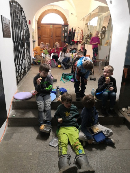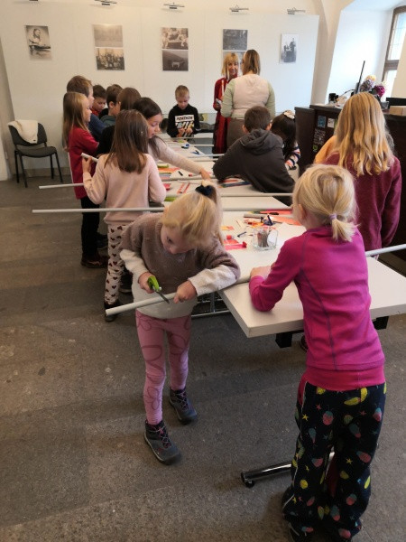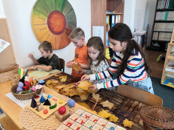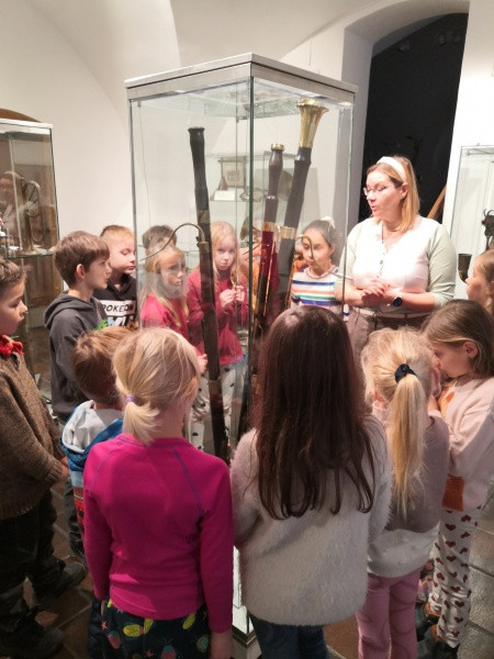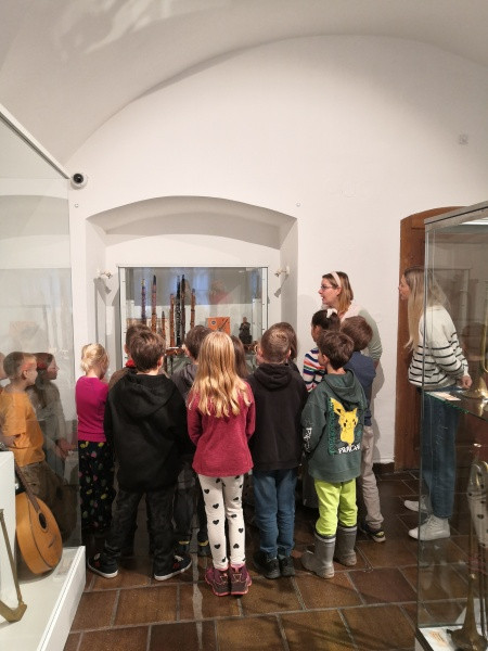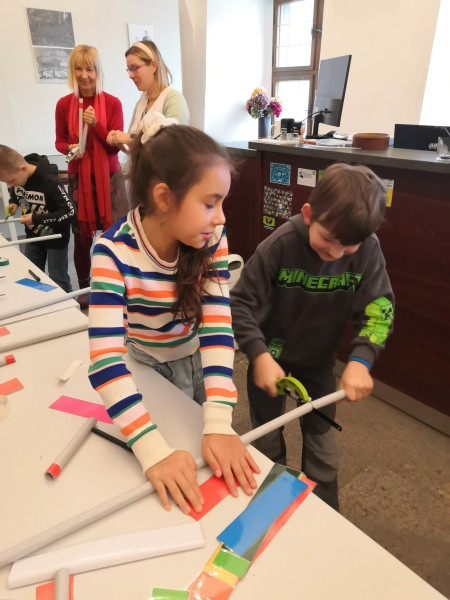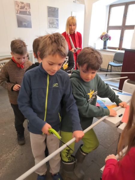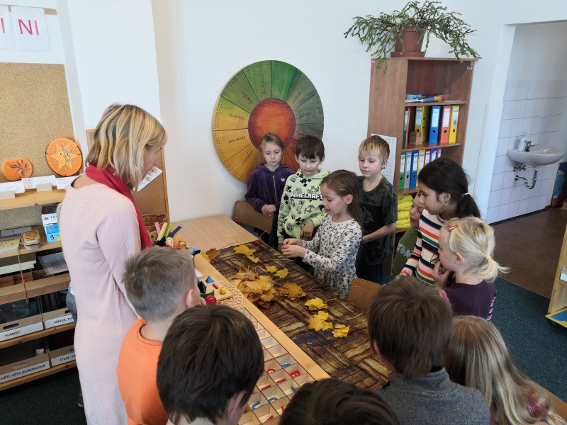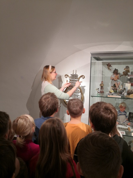 Jedna žačka přinesla materiál a učila děti vyrábět růže z javorového listí. Týden jsme zakončili návštěvou výstavy historických hudebních nástrojů, kde si děti zkusily vyrobit nástroj, zahrát si na něj, zazpívat si a zatančit.