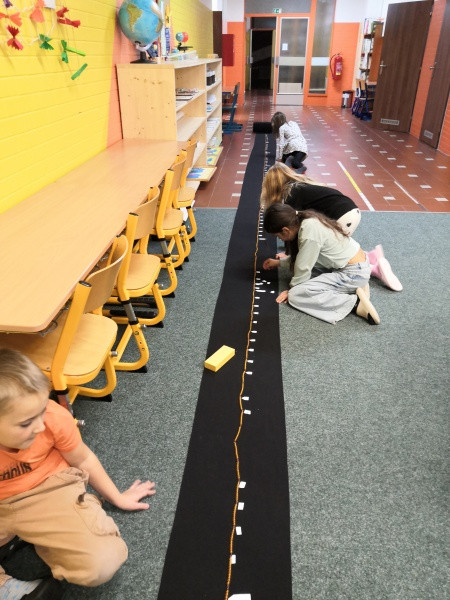 Třeťáci si procvičovali v.s. po B na pomůckách a v PS, učili se odůvodňovat i/y. Procvičovali si číselnou řadu do 1000, orientaci na číselné ose, porovnávání čísel, zaokrouhlování na desítky a na stovky. V geometrii se seznámili s přímkami rovnoběžnými, různoběžnými, kolmými.