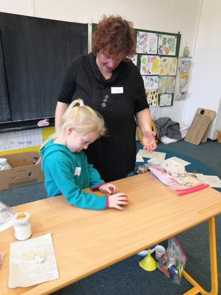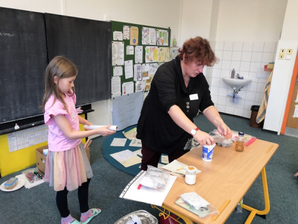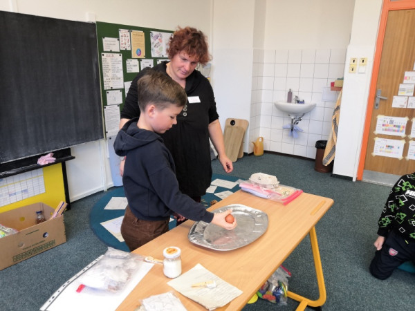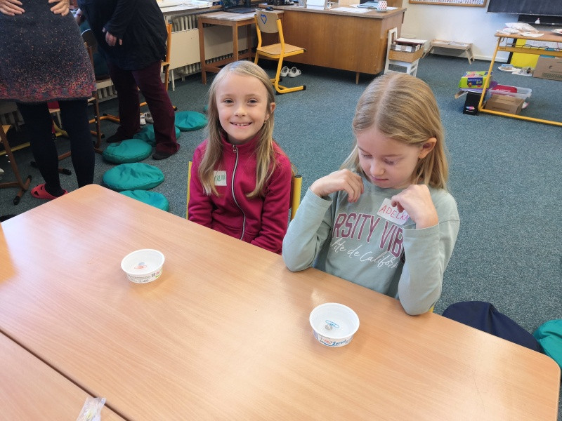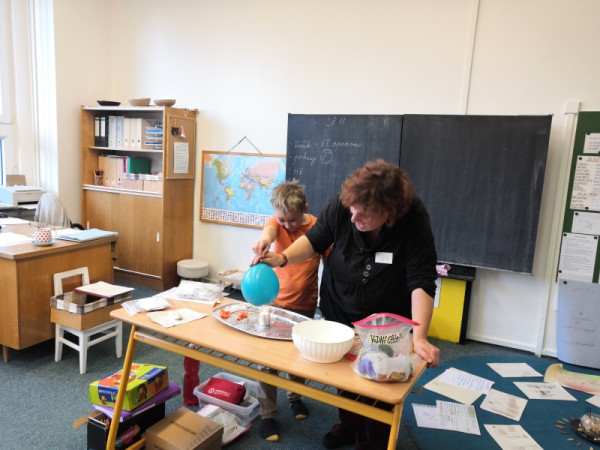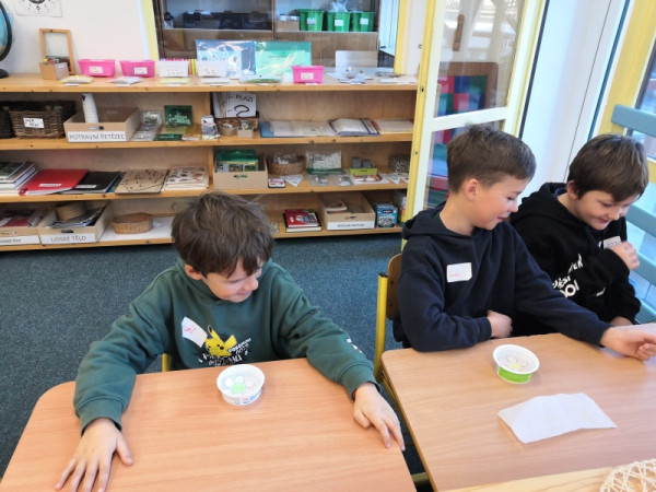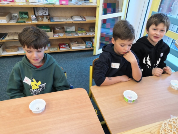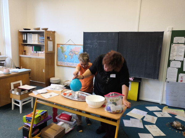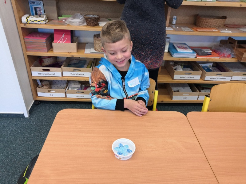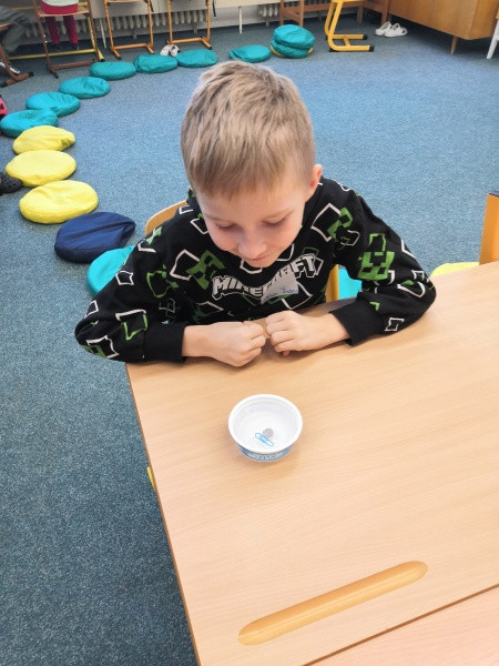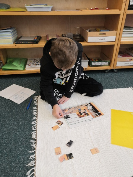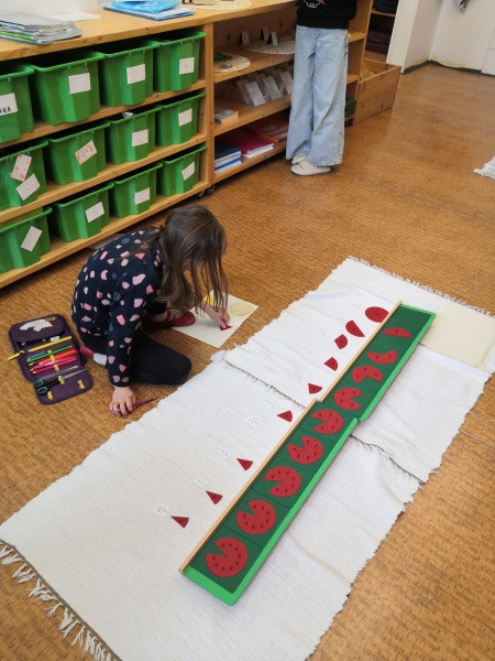 Prvňáci si poslechli příběh o měření a mohli si zkoušet měřit různými typy metrů, učili se pracovat s kartičkami na matematiku. Někteří dělili na dělící tabulce a pokračovai v písance.