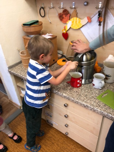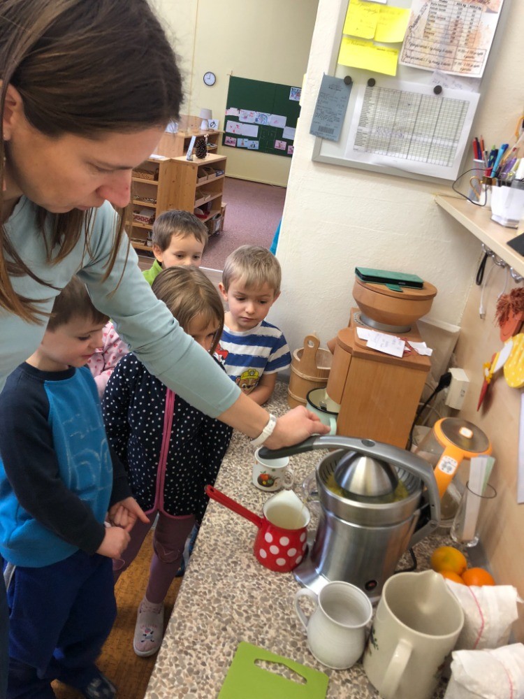 Abychom si doplnili vitamíny, vymyslela průvodkyně Jana, že přinese z domova freshovač a nakoupila pomeranče. Děti si vyzkoušely, jak chutná čerstvě vymačkaná pomerančová šťáva. Nejprve pomeranče pečlivě omyly rozkrojily, poté je lisovaly a nakonec si pochutnaly na osvěžující šťávě. Byla to zajímavá zkušenost – děti mohly pozorovat proměnu ovoce, cítit jeho vůni a ochutnat rozdíl mezi džusem z obchodu a čerstvým freshem.