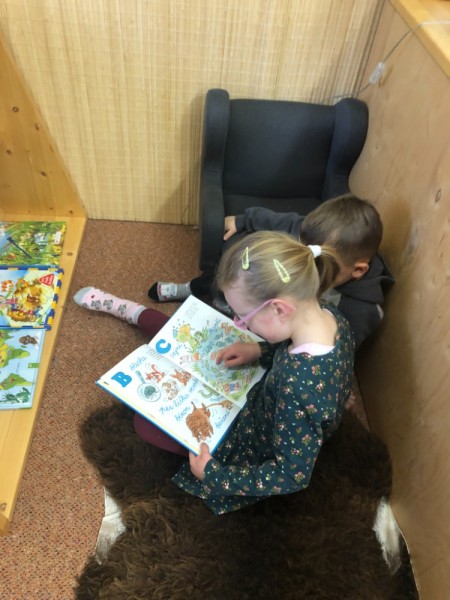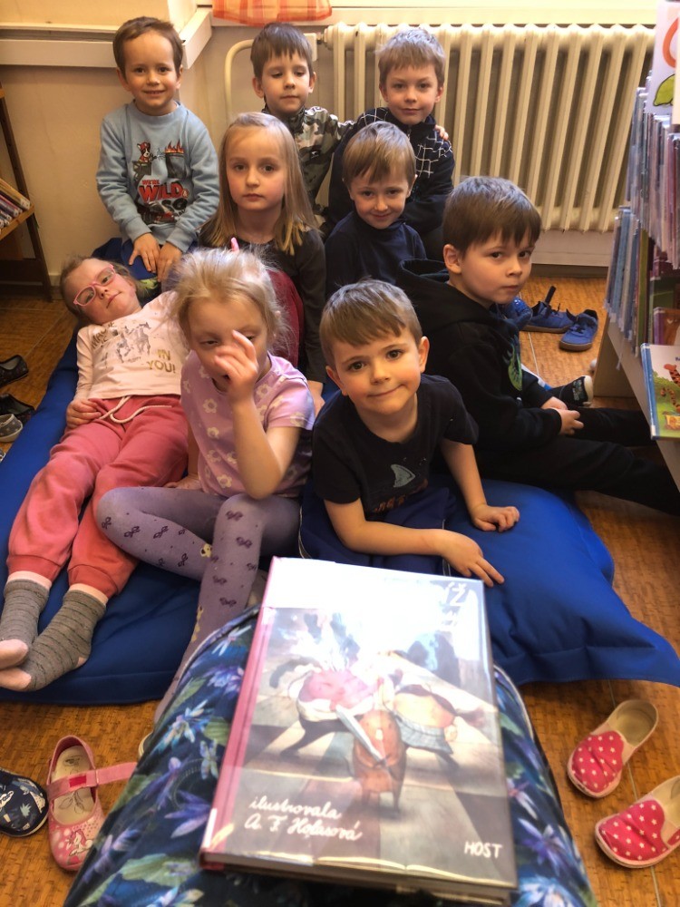 Abychom ještě více podpořili čtenářskou gramotnost, rozhodli jsme se začít s předškoláky každou středu navštěvovat pobočku Městské knihovny Prachatice zde na Národce. S dětmi si prohlížíme knihy, které by nás mohly zajímat, radíme se s paní knihovnicí, půjčujeme si nějaké do MŠ. Z těchto knih potom čteme a nové příběhy si děti zaznamenávají do svého čtenářského deníku.