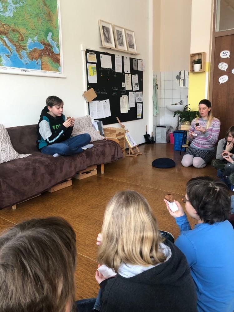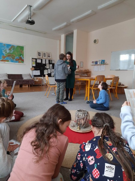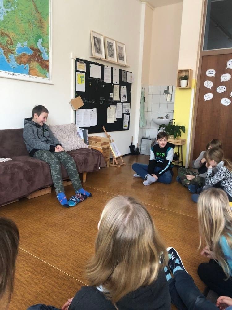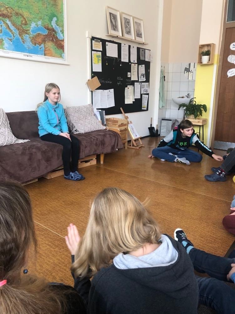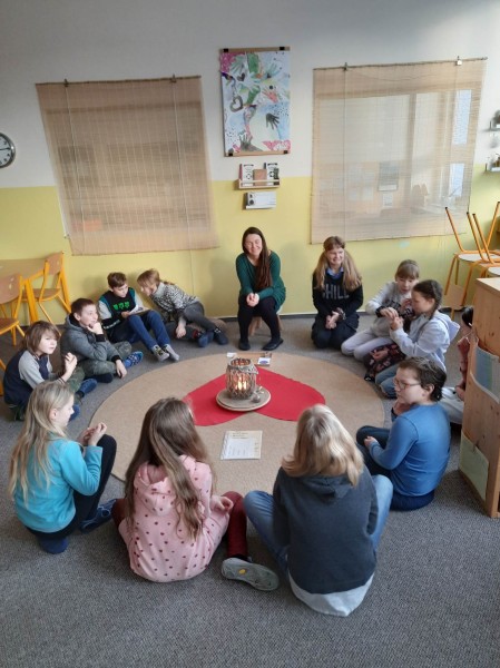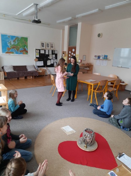 V úterý jsme rekapitulovali půlrok, každý, kdo chtěl si mohl polechnout jen ty pozitivní informace o své osobnosti. Myslím, že děti dokázaly moc hezky, s úctou a respektem dát zpětnou vazbu ostatním. Oslavu jsme zakončili sladkou tečkou.