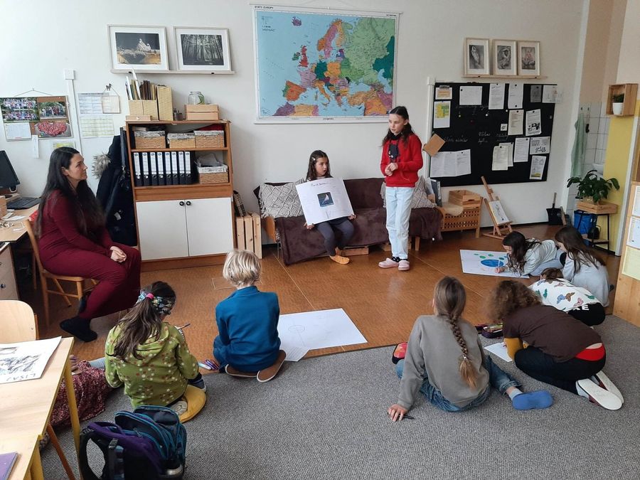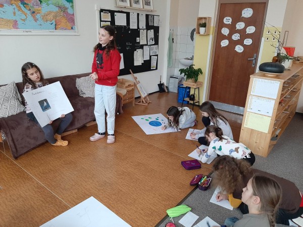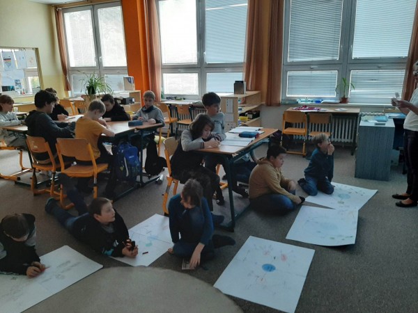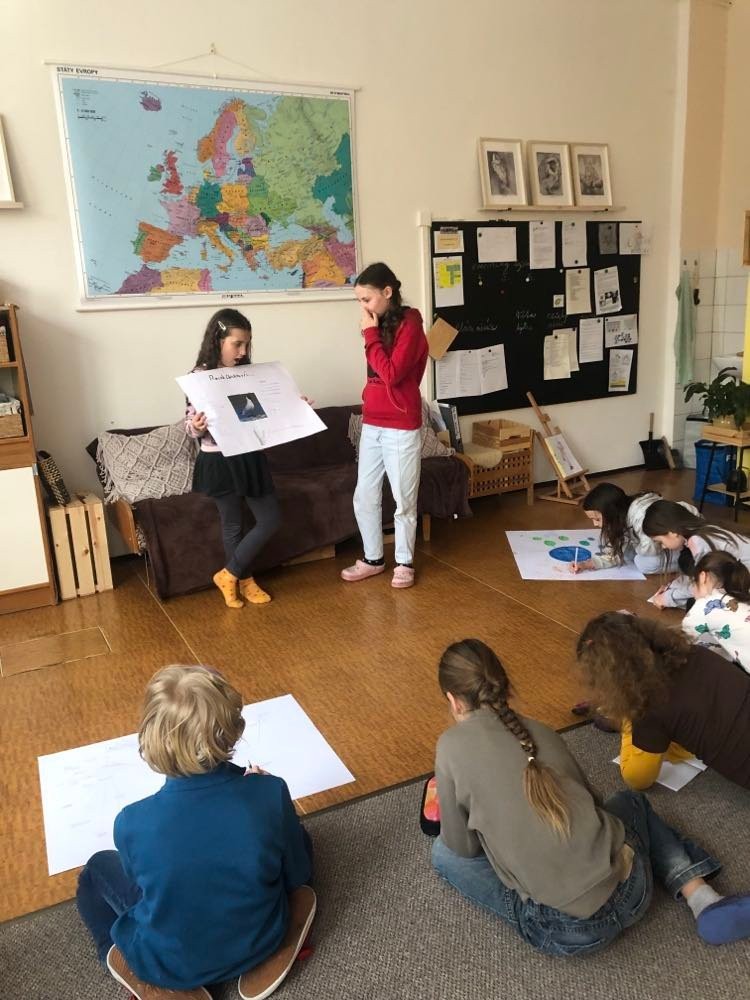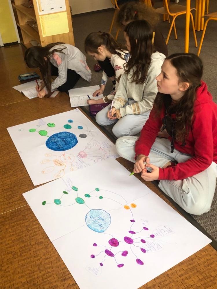 Ve středu si děti napsaly kontrolní opakování o vodě a řece. Byl čas na několik prezentací básní a pověstí. Po velké přestávce proběhly prezentace týkající se Indie. Našel se i čas na tvoření erbů či myšlenkových map ekosystému rybníka.