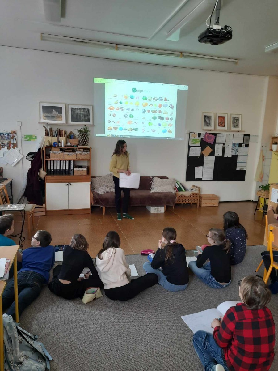 tento týden probíhaly prezentace dle plánu. Začali jsme se nořit do historické minulosti v dějepisných okénkách. Někdo byl bruslit..., většina plavala. Napsali jsme si "Malá opakování" z matematiky - dopadla vcelku dobře - podívejte se do bakalářů. Prošli jsme přepisy, rozcvičky i větu týdne. Ve čtvrtek nás navštívil pan Lumír Vozábal a nadchl nás pro hledání minerálů, popovídal o horninách. Proběhly také některé prezentace dětí. Já jsem viděla "Pompeje" a "Léčivou sílu minerálů" - obě byly velmi vydařené a byla jsem na děti hrdá.... V pátek jsme měli třídní sněm a čas na dokončení práce. Byl to krásný naplněný týden.