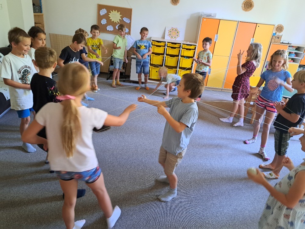 Seznámili jsme se s prvňáčky a zkusili si seznamovací pavučinu přátelství.