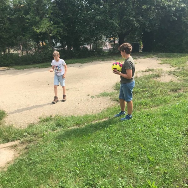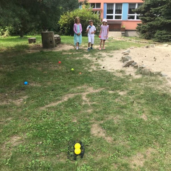Díky příznivému počasí jsme chodili brzo ven. Chlapci hráli fotbal a holčičky vyzkoušeli skákací gumu a různé sportovní náčiní.