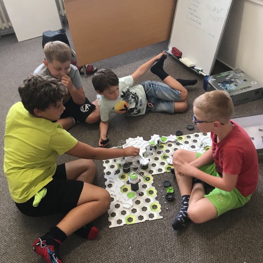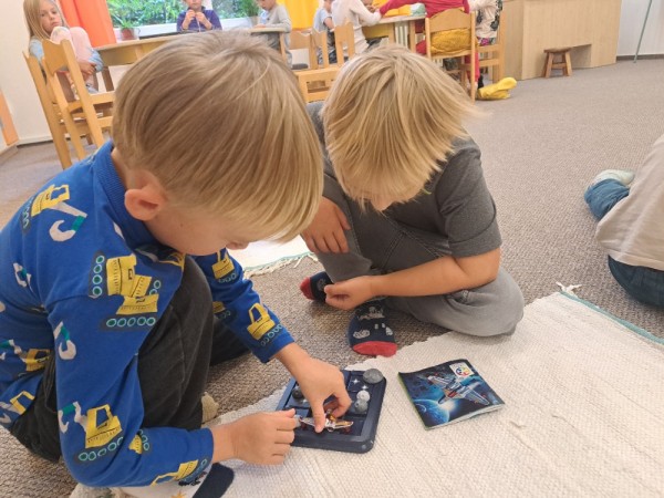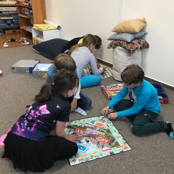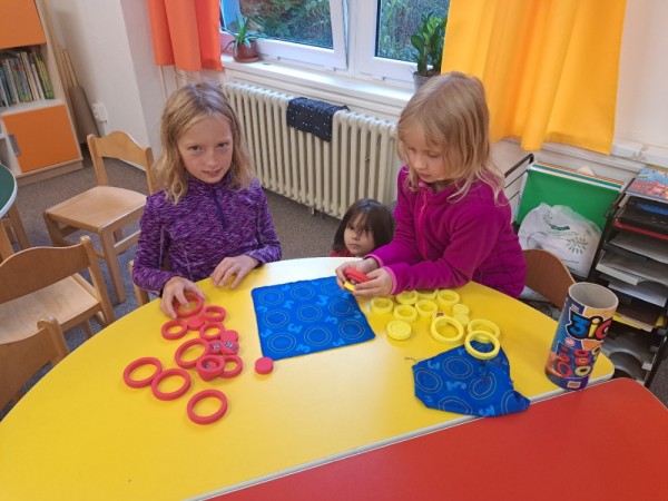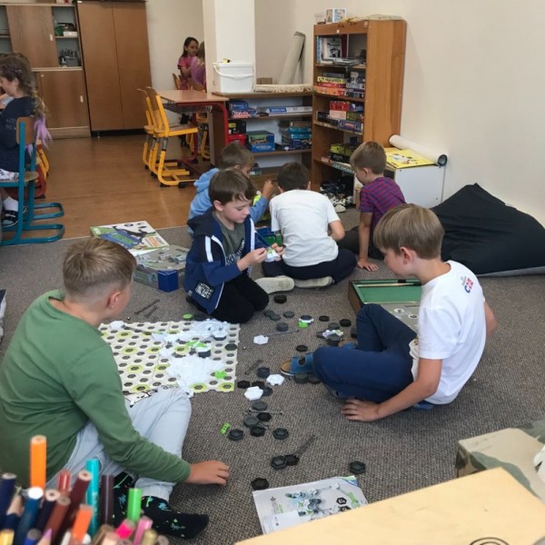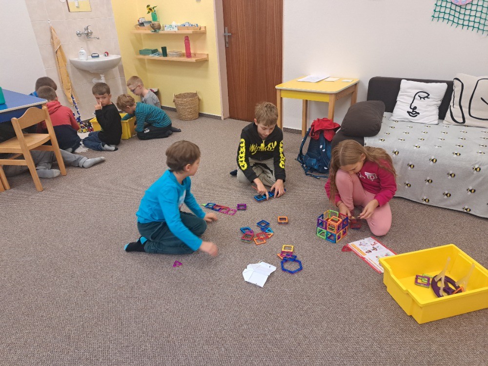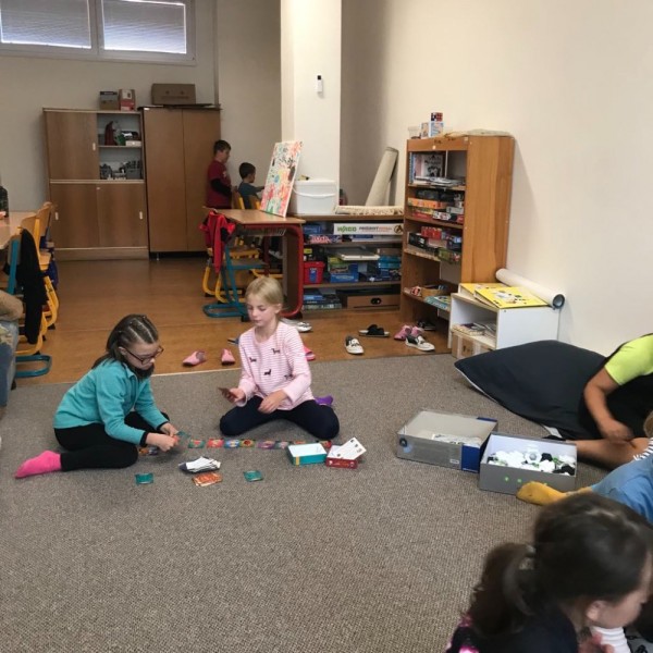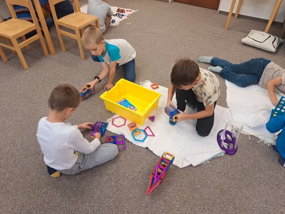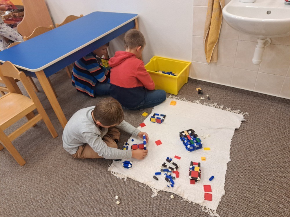 Některé děti stavěli různé stavby ze stavebnic, některé děti hrály deskové hry.
