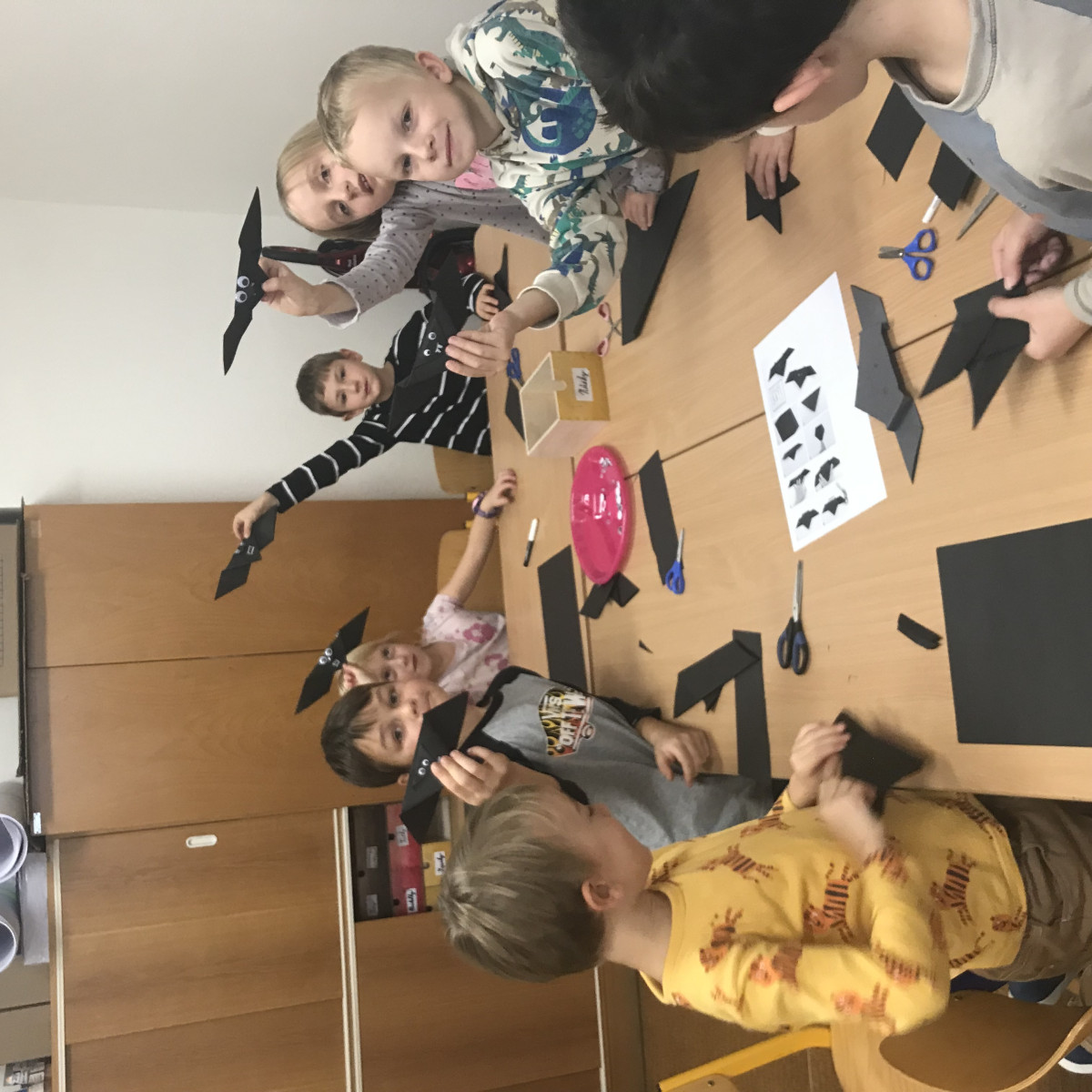 V tomto týdnu hrály děti společenské hry a stavěly zejména z Gravitraxu různé dráhy. Lego také nikdy neomrzí. Děvčata tvoří dle své fantazie různé obálky na tajná psaníčka nebo krásné obrázky. Při společném tvoření si v různých skupinách zahrály výukové hry, vyrobily deštník z papíru. Kdo minulý týden pekl, ozdobil si "Hnětýnky"(Mětýnky). Protože se blíží Halloween složili jsme si netopýří origami. Za příznivého počasí jsme byly venku a hráli si s podzimními plody.