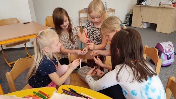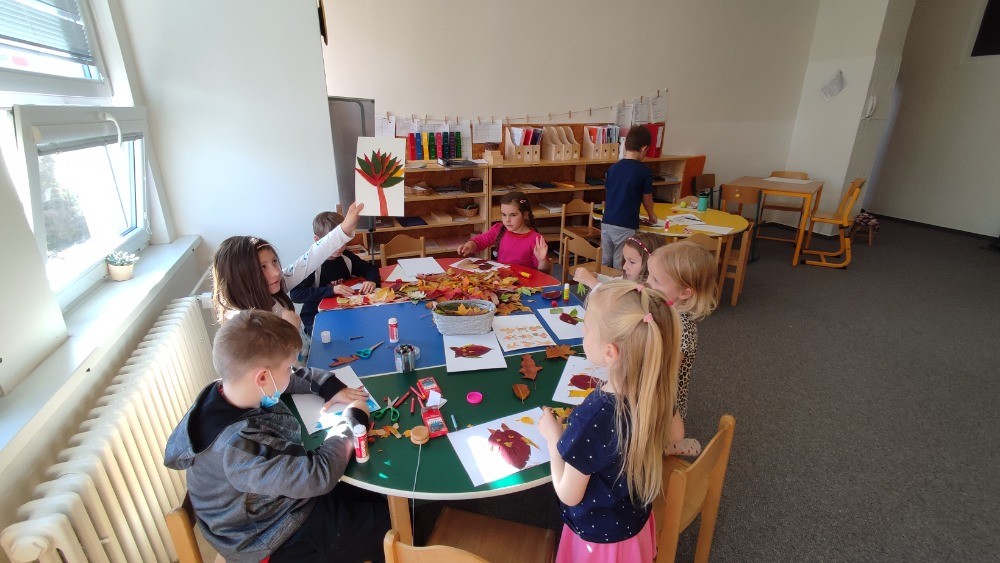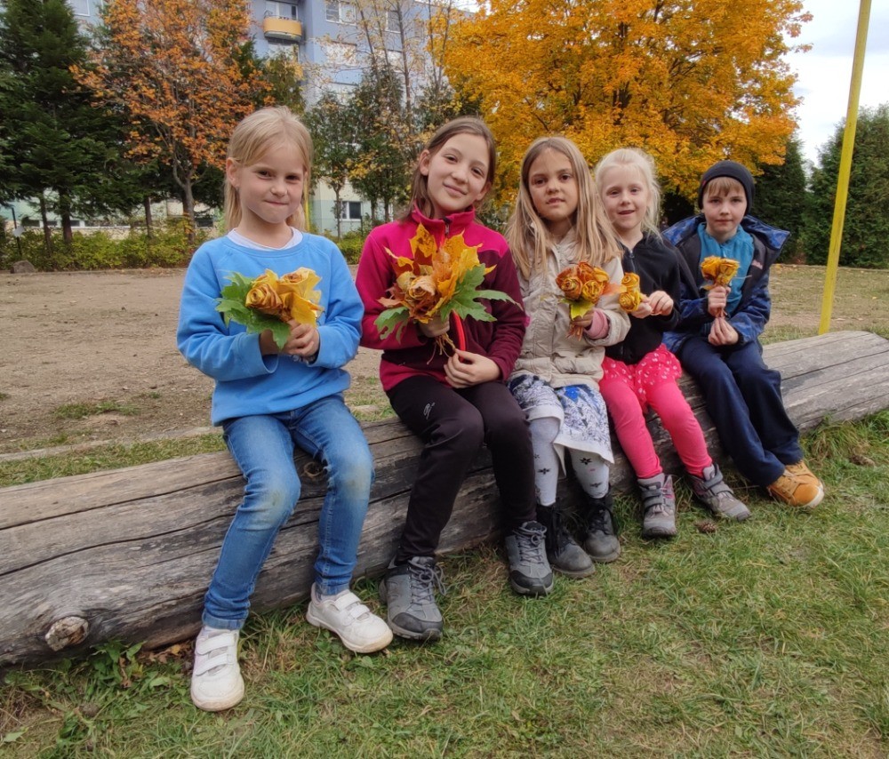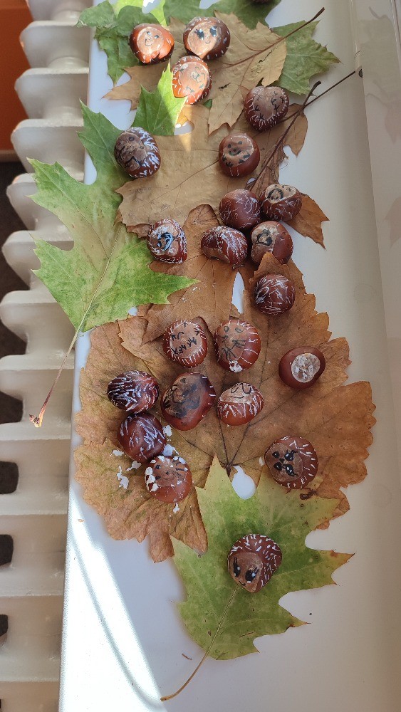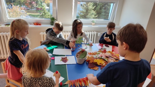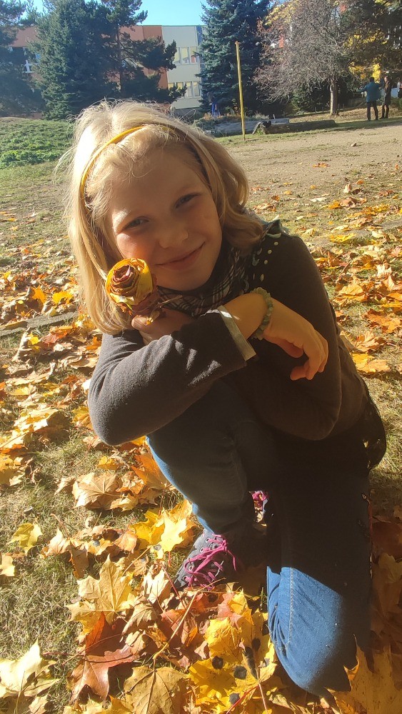 Tento týden jsme v družině tvořili z přírodních materiálů. Barevný podzim nám jich tolik přináší na tvoření, že by byla škoda toho nevyužít. Zlákal nás javor co máme na zahradě a tak jsme si pod něj sedli a učili se růže z listí, pro velkých úspěch jsme druhý den pokračovali. Malovali jsme ježky na kaštany. A ve čtvrtek jsme tvořili obrázky zvířat z listí. Byl to báječný barevný týden .