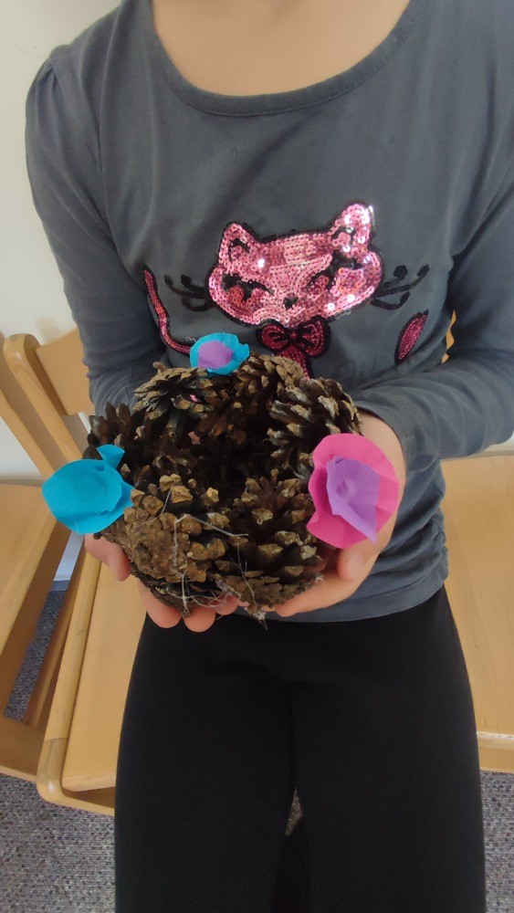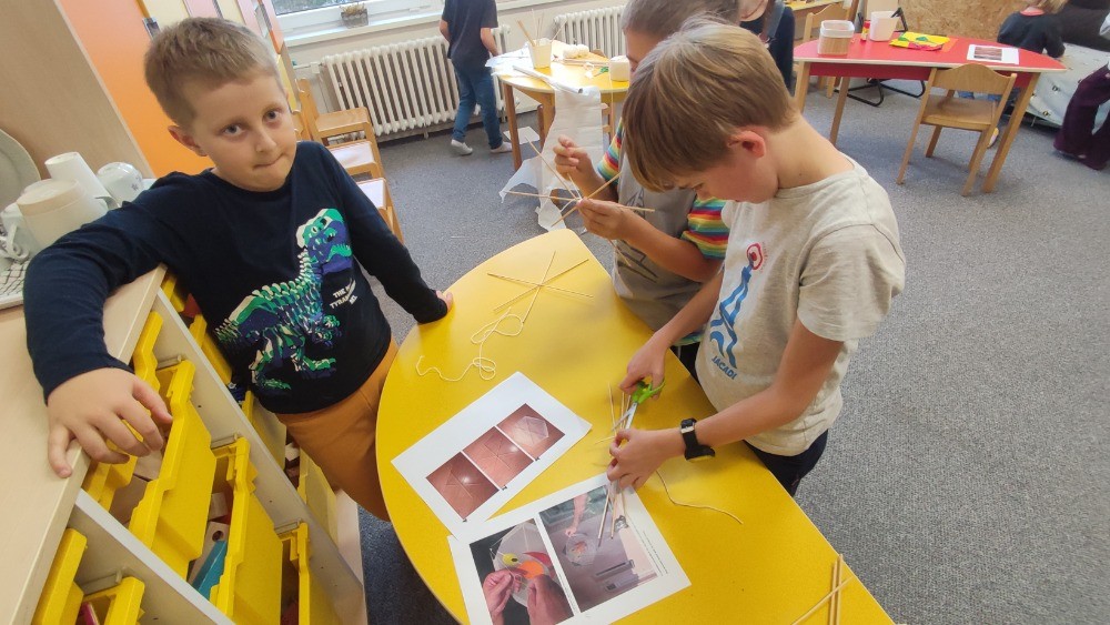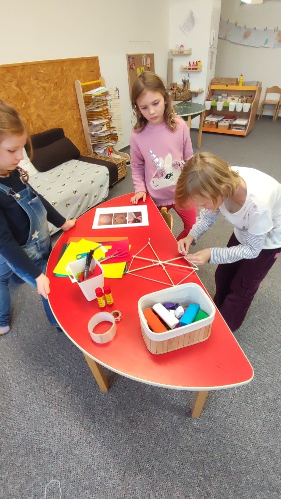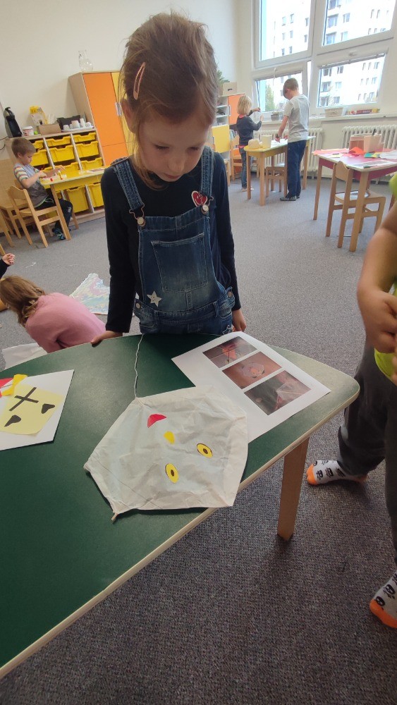 V 9.týdnu, který byl krátký jsme spolupracovali s Pavlou z druhé družiny Montessori, kam chodí starší děti.Mohli si vyrobit draka dle návodu, draka z barevného papíru a misku že šišek. Užili jsme si i hezké počasí venku na zahradě.