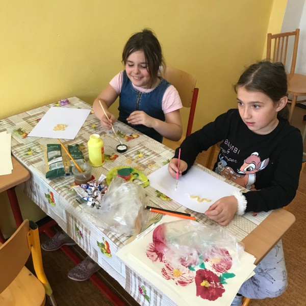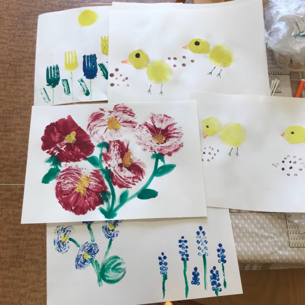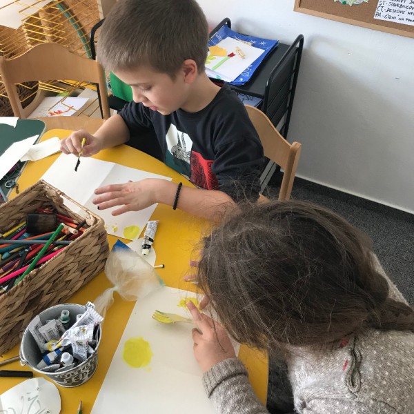 Malovali jsme jarní motivy pomocí houbičky, vatových tampónů, obtisků mikroténových sáčků a vidličky. Někdo si zkusil obrázek z těstovinových kolínek. Na Montessori zahradě jsme se vydováděli a slunili. V pátek děti odpočívali u čtení na pokračování.
