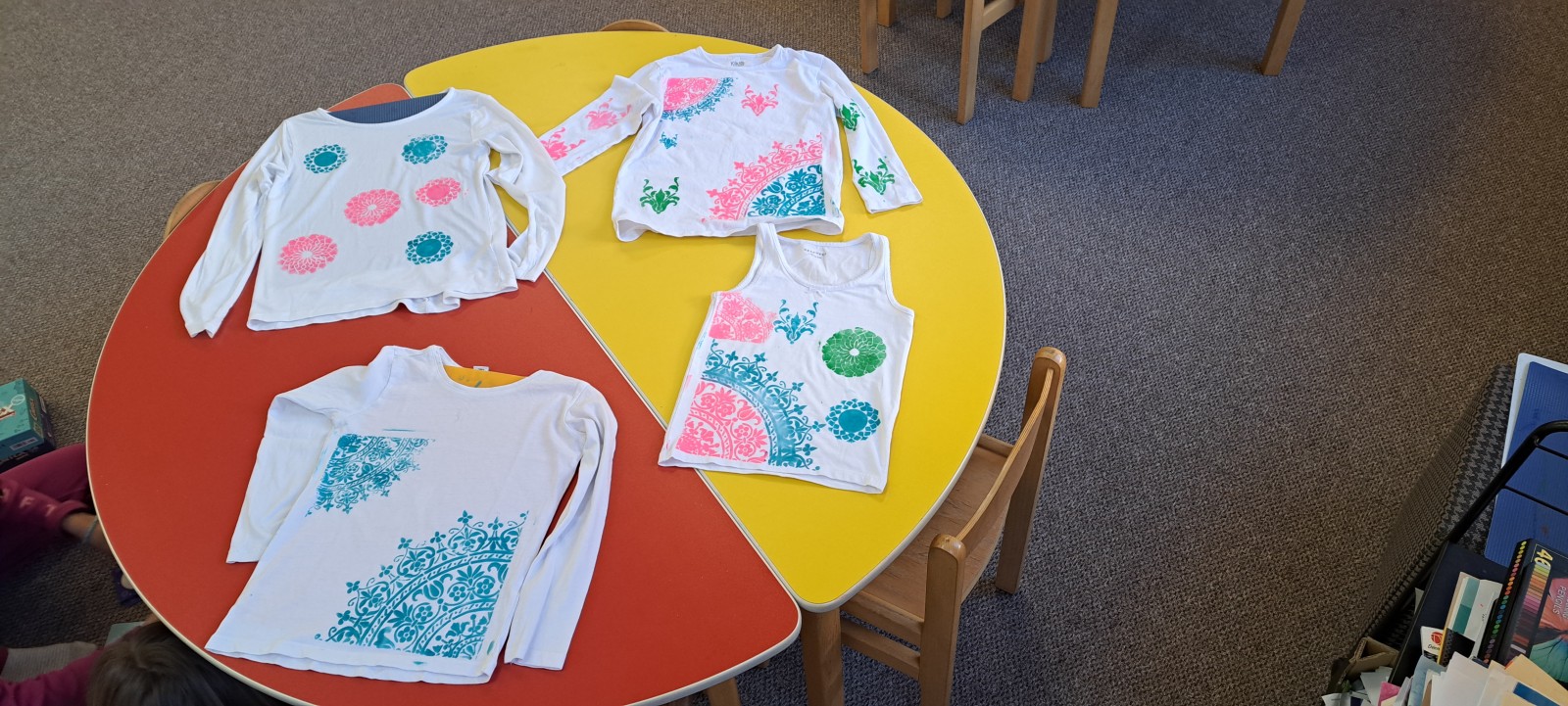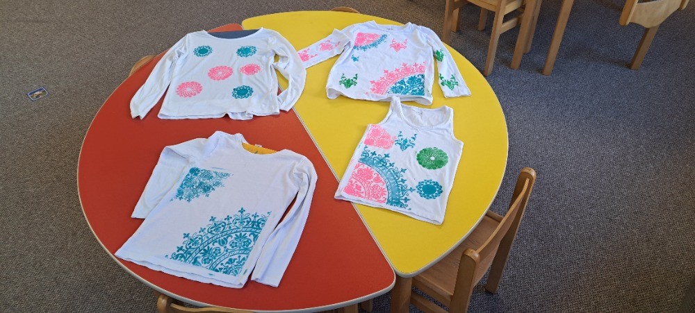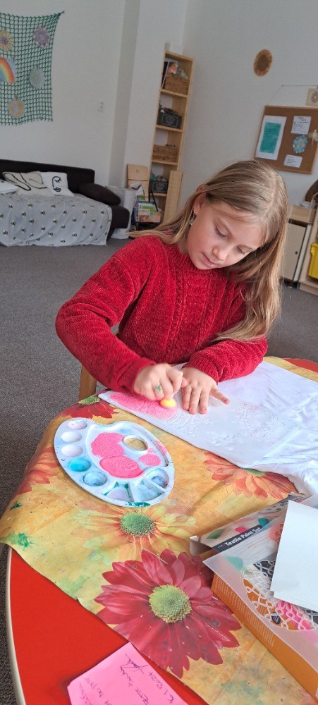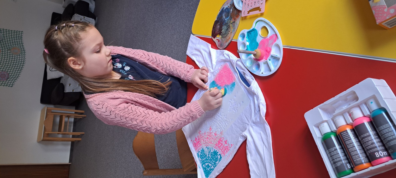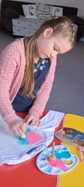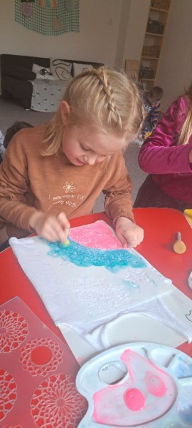 Tento týden si kluci malovali, plstili a stavěli z lega. Holčičky si přinesli bílá trika a malovali na ně barvami na textil.