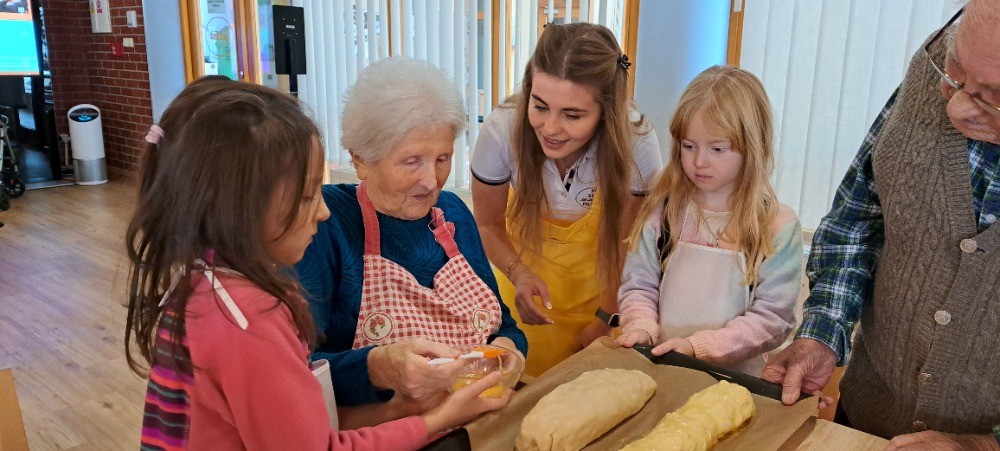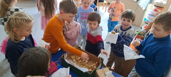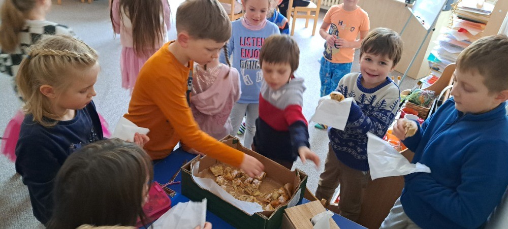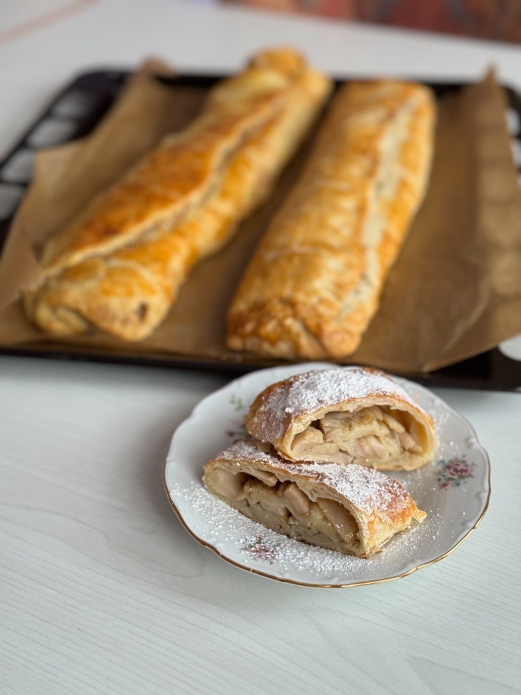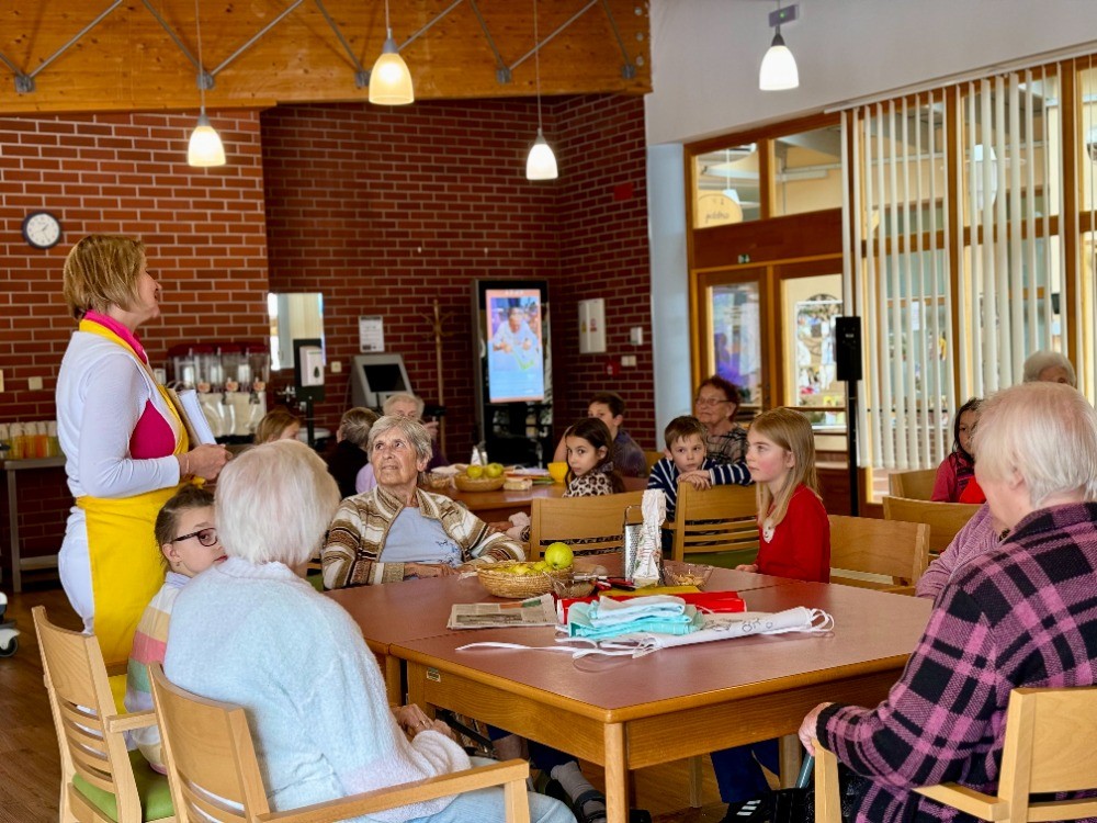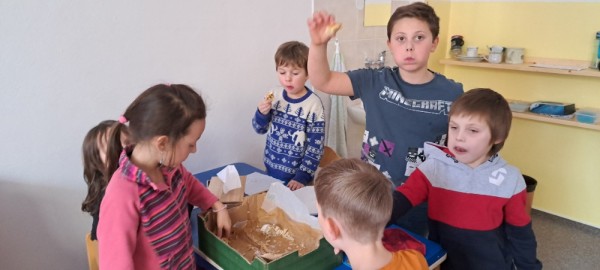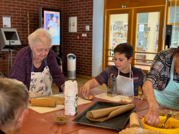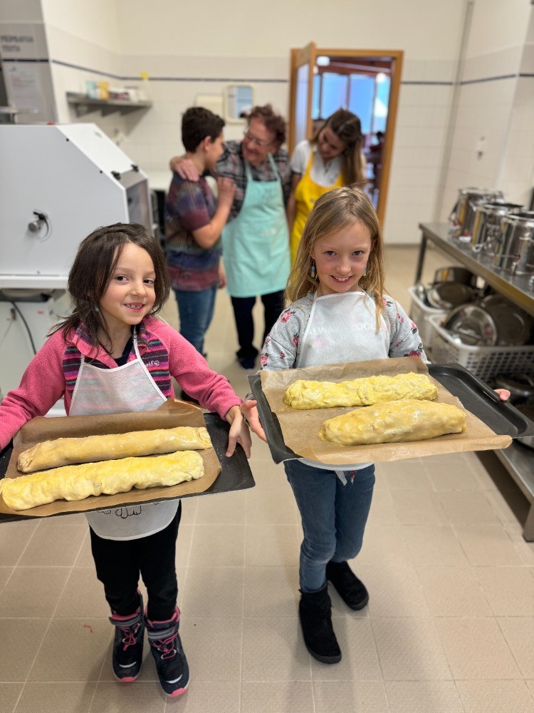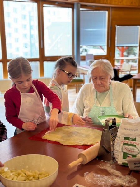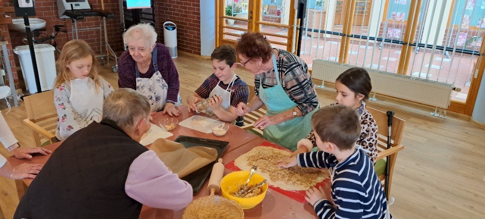 Ve 20. týdnu jsme byli v domově seniorů. Pekli jsme štrůdl. Jelikož nám příprava trvala déle, dojela jsem pro upečený štrůdl ve středu a děti měli skvělou odpolední svačinu.