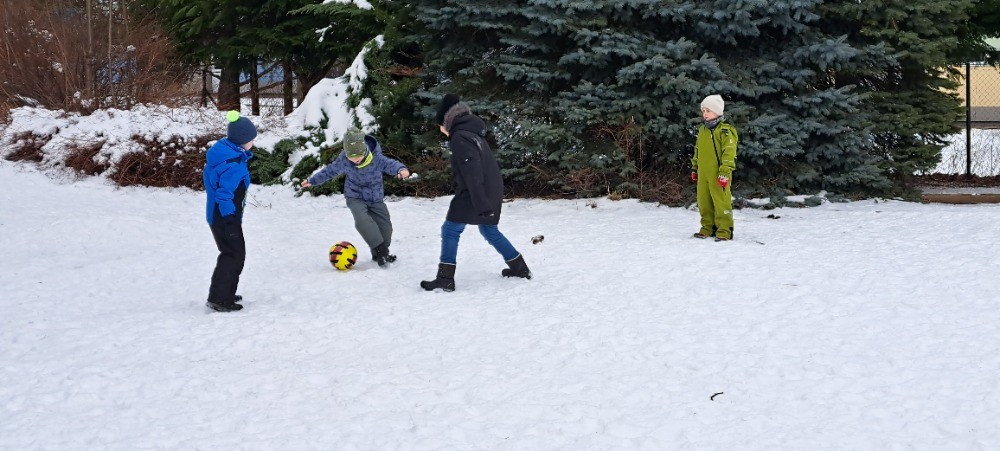Chodili jsme ven a hráli různé pohybové hry. U kluků převládá fotbal na sněhu, na suchu i na blátě.